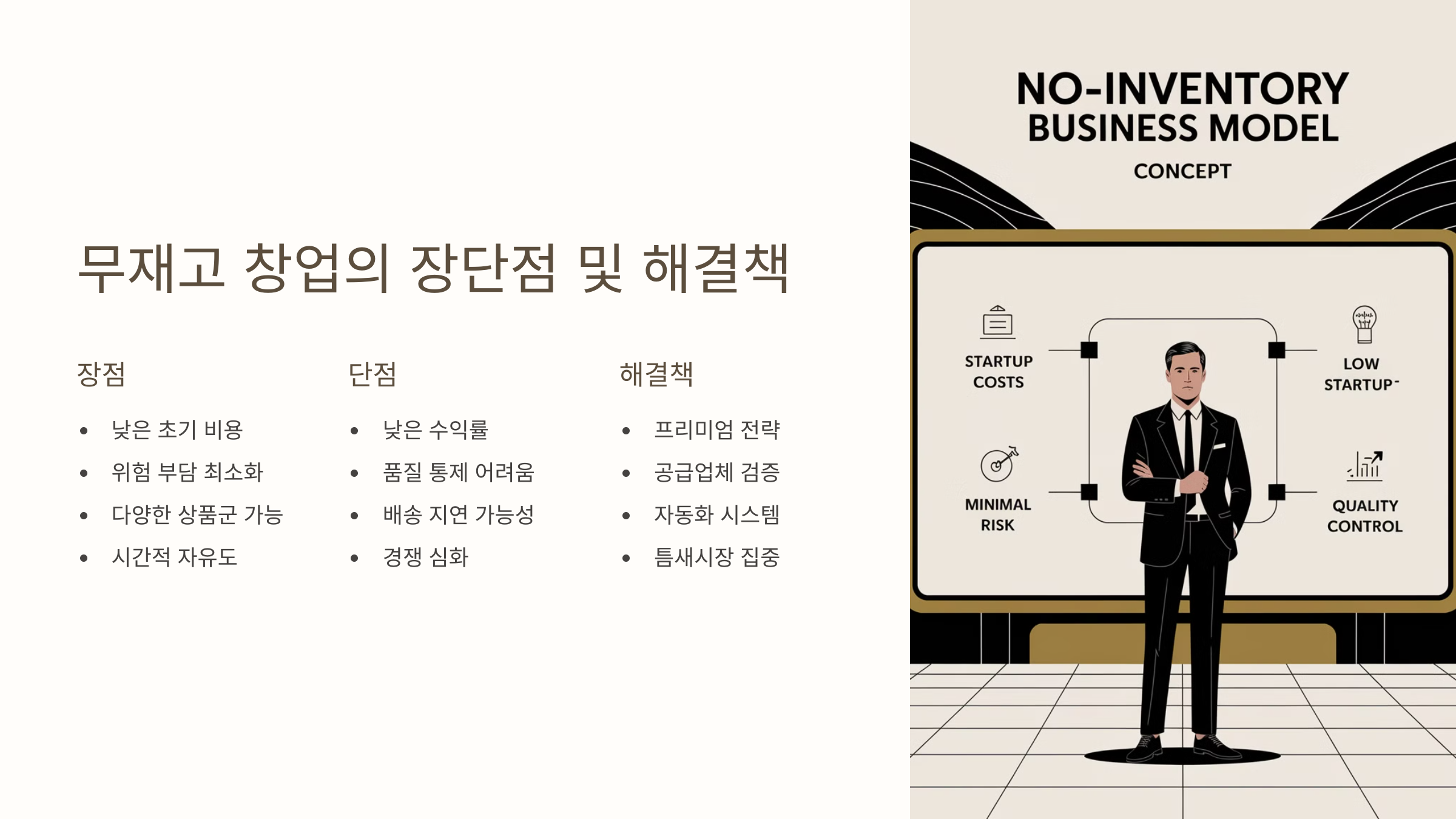 무재고 창업의 주요 장점과 단점, 그리고 이를 해결할 수 있는 대응 전략을 살펴볼게요! 🔥