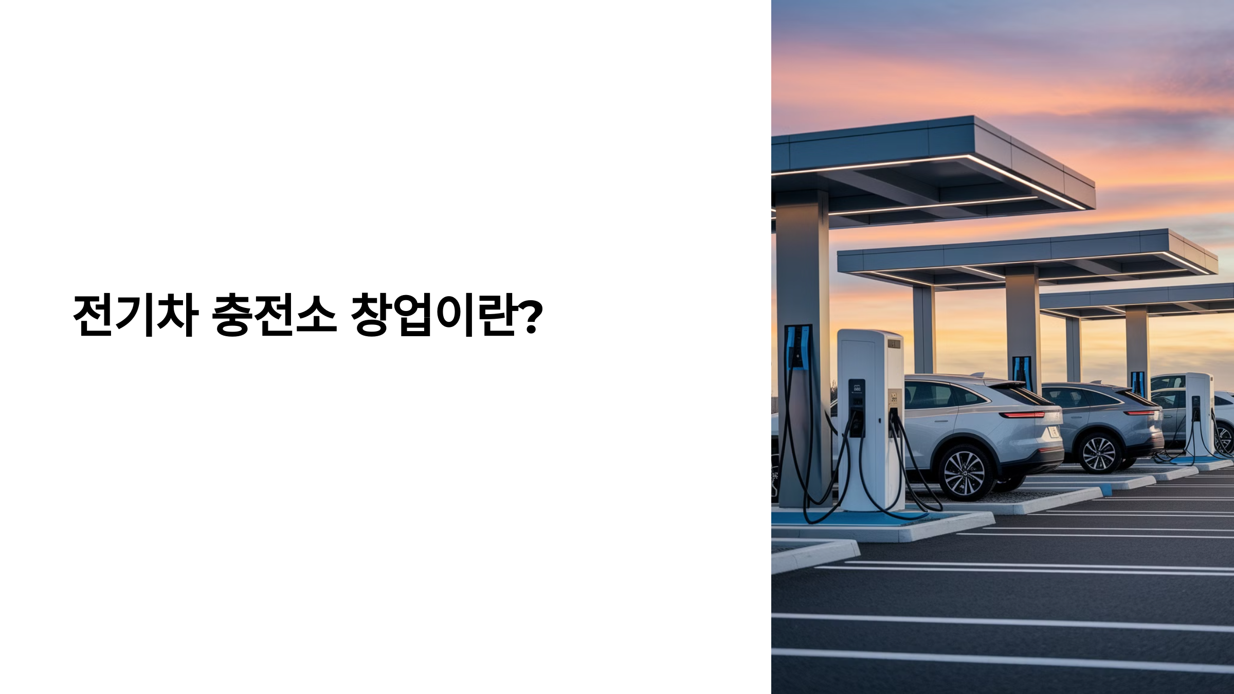 전기차 충전소 창업은 **전기차(EV) 운전자들에게 충전 서비스를 제공하고, 충전 요금을 통해 수익을 창출하는 사업**이에요. ⚡🚗