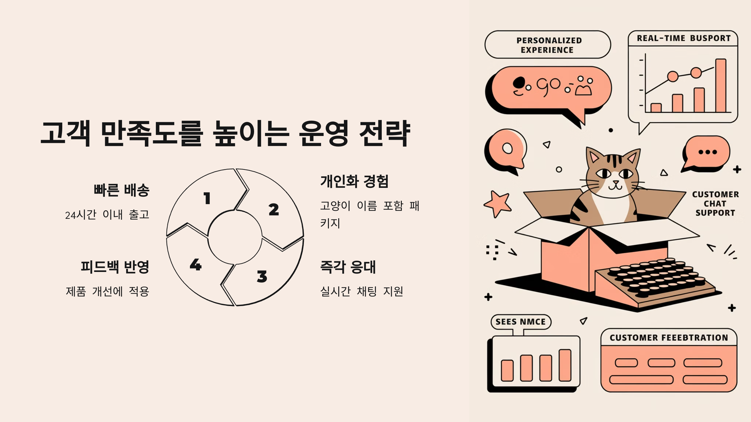 고양이 용품 구독 서비스에서 고객 만족도는 장기 구독과 직결돼요. 한 번 이용한 고객이 계속 구독하도록 만드는 것이 핵심이에요! 🐾