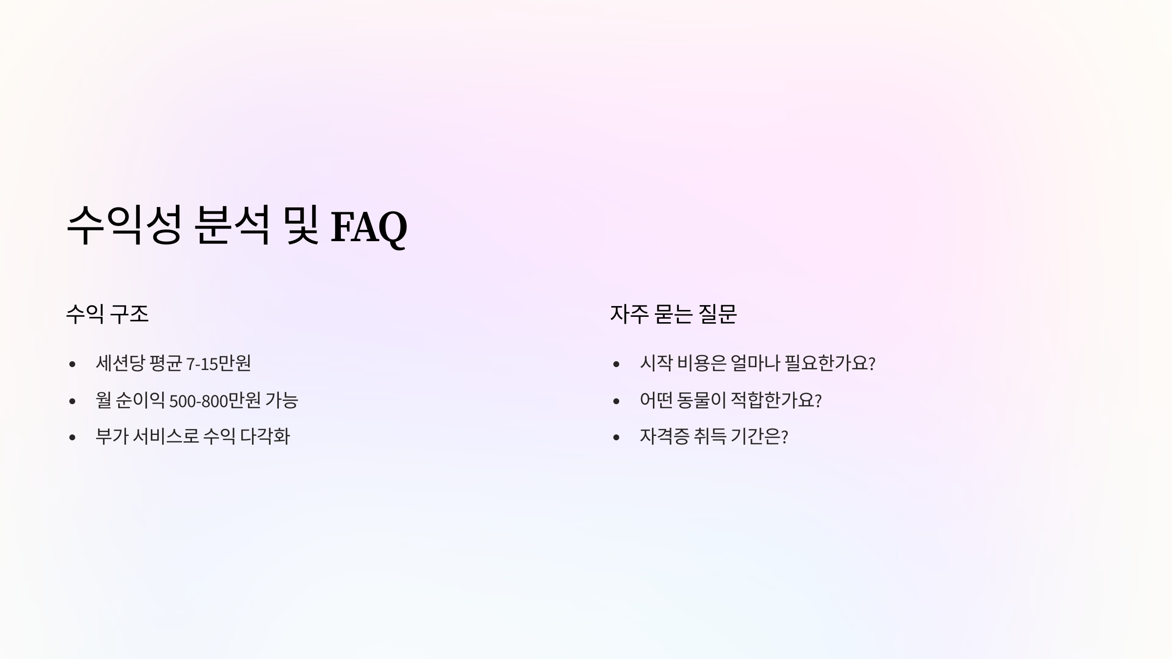❓ 이제 펫 테라피 창업과 관련된 자주 묻는 질문(FAQ)을 확인해볼까요?