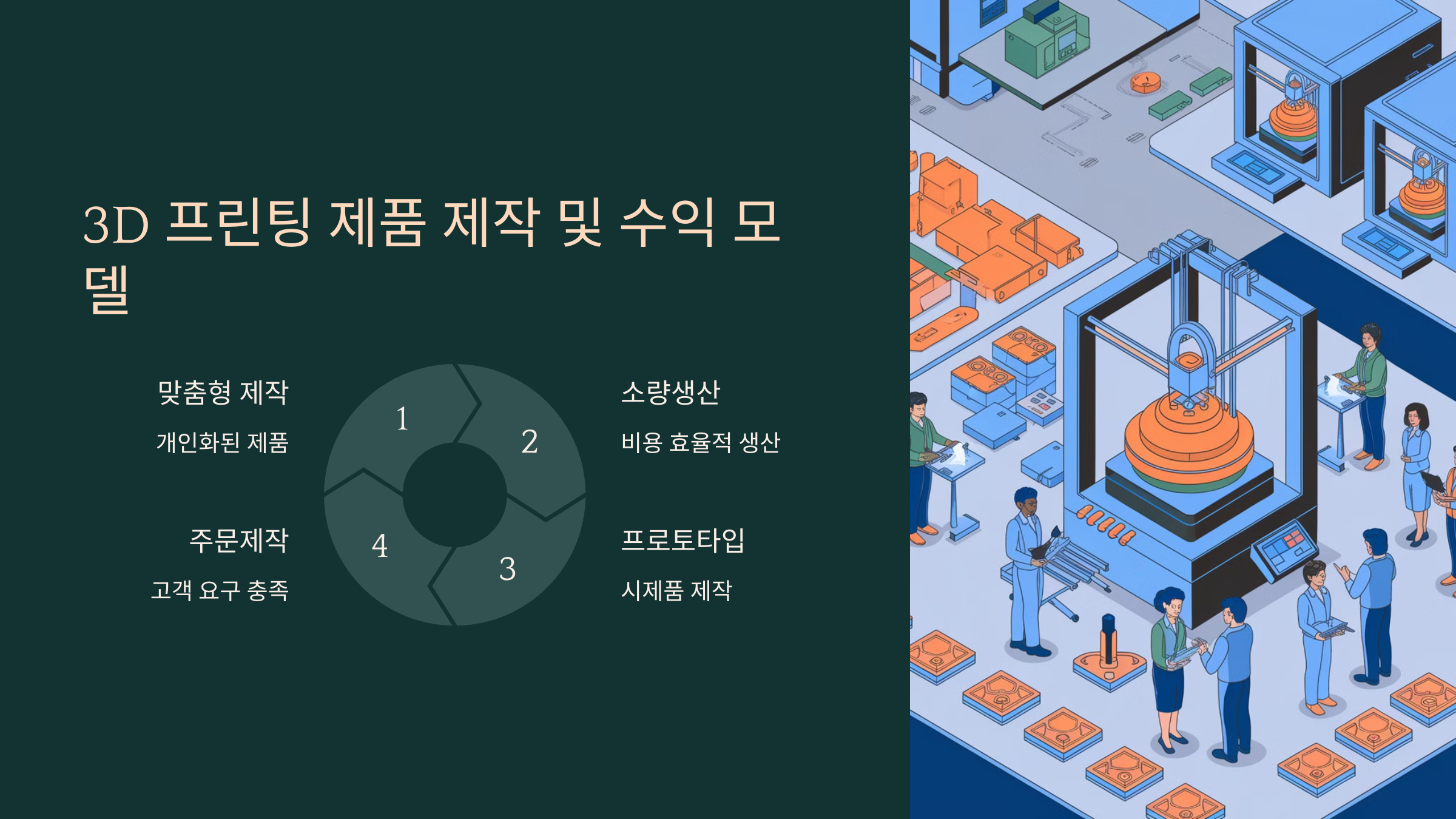 | 커스텀 제품 판매 | 고객 맞춤형 3D 프린팅 제품 제작 | 100만~500만 원 |