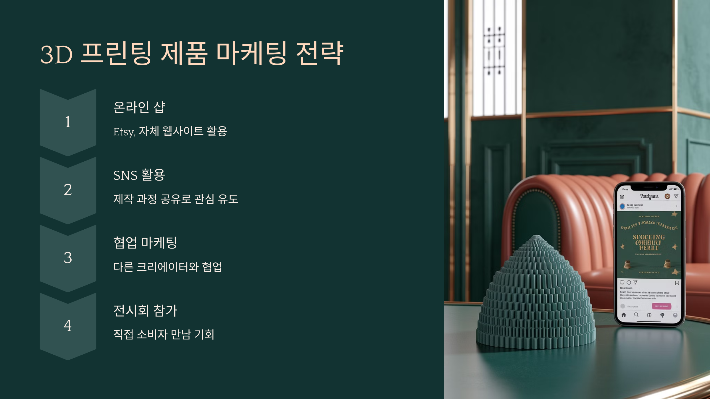 3D 프린팅 제품은 고객 맞춤형 서비스 & 온라인 홍보를 병행하면 빠르게 성장할 수 있어요! 🚀