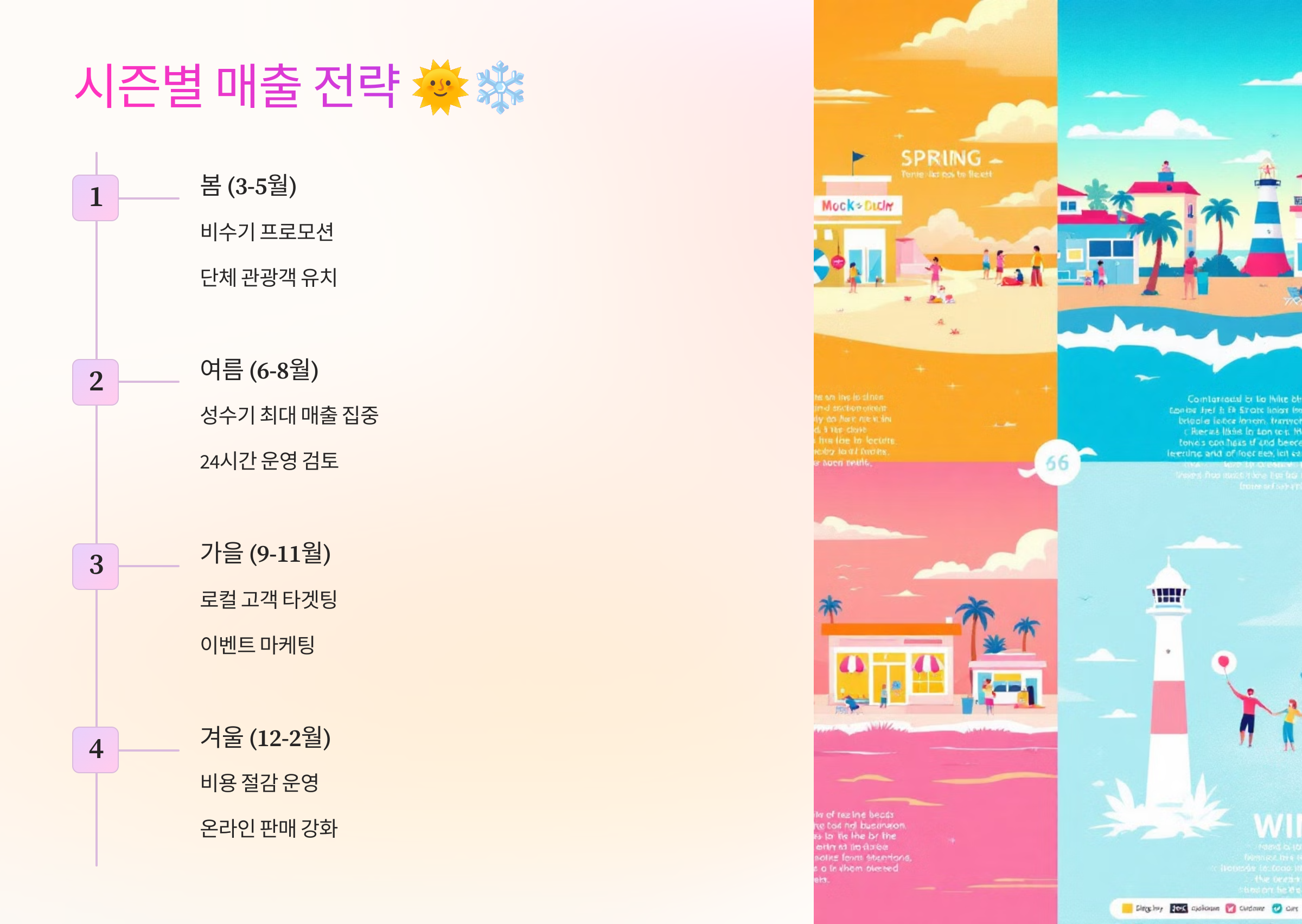 이제 ‘시즌별 매출 전략’을 알아볼까요? 🌞❄️