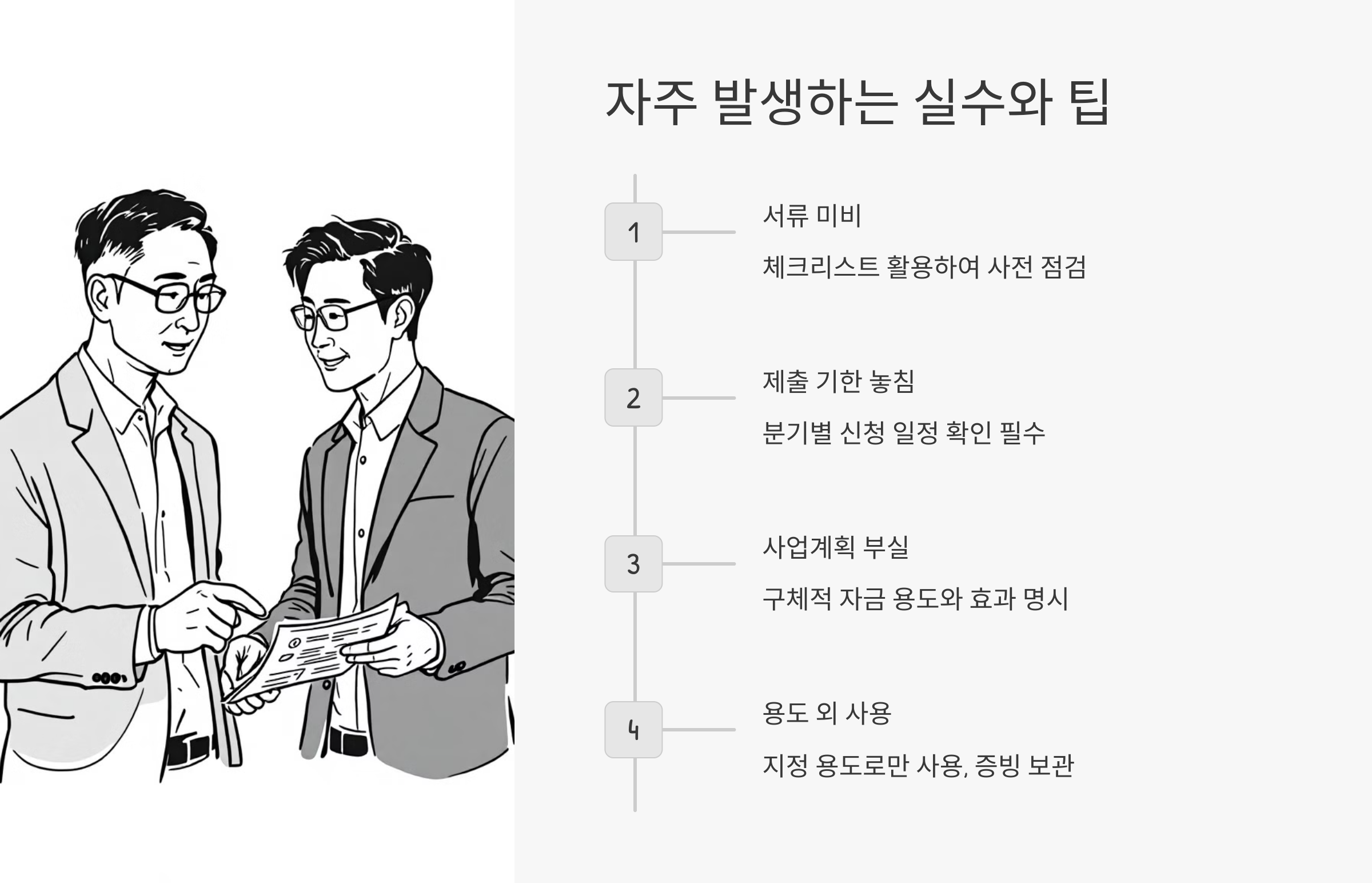 | 서류 누락 | 사업계획서, 세금 신고서 등 빠짐없이 준비 |