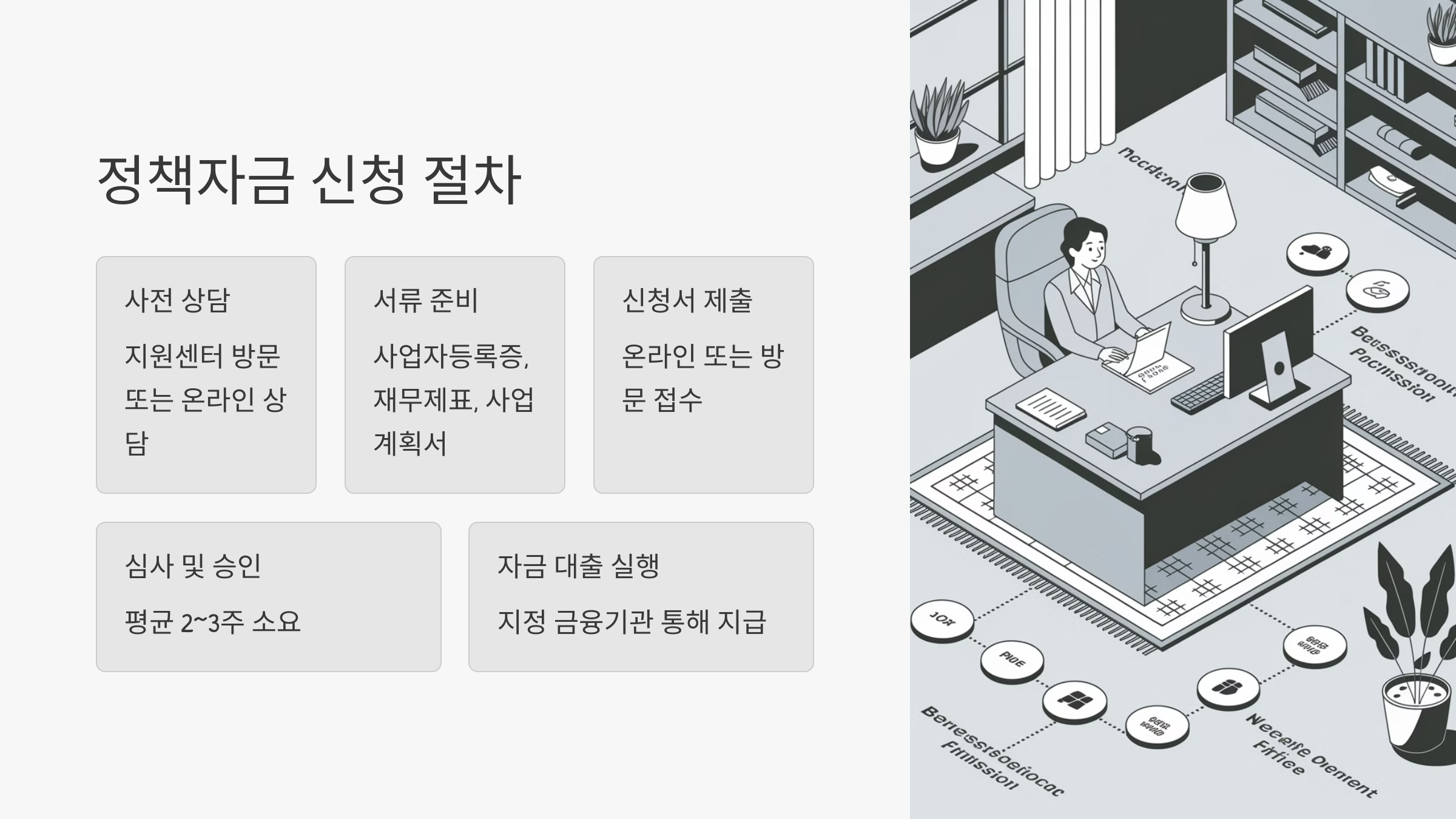 다음으로는 ‘정책자금 신청 절차’를 하나씩 알려드릴게요! 📝