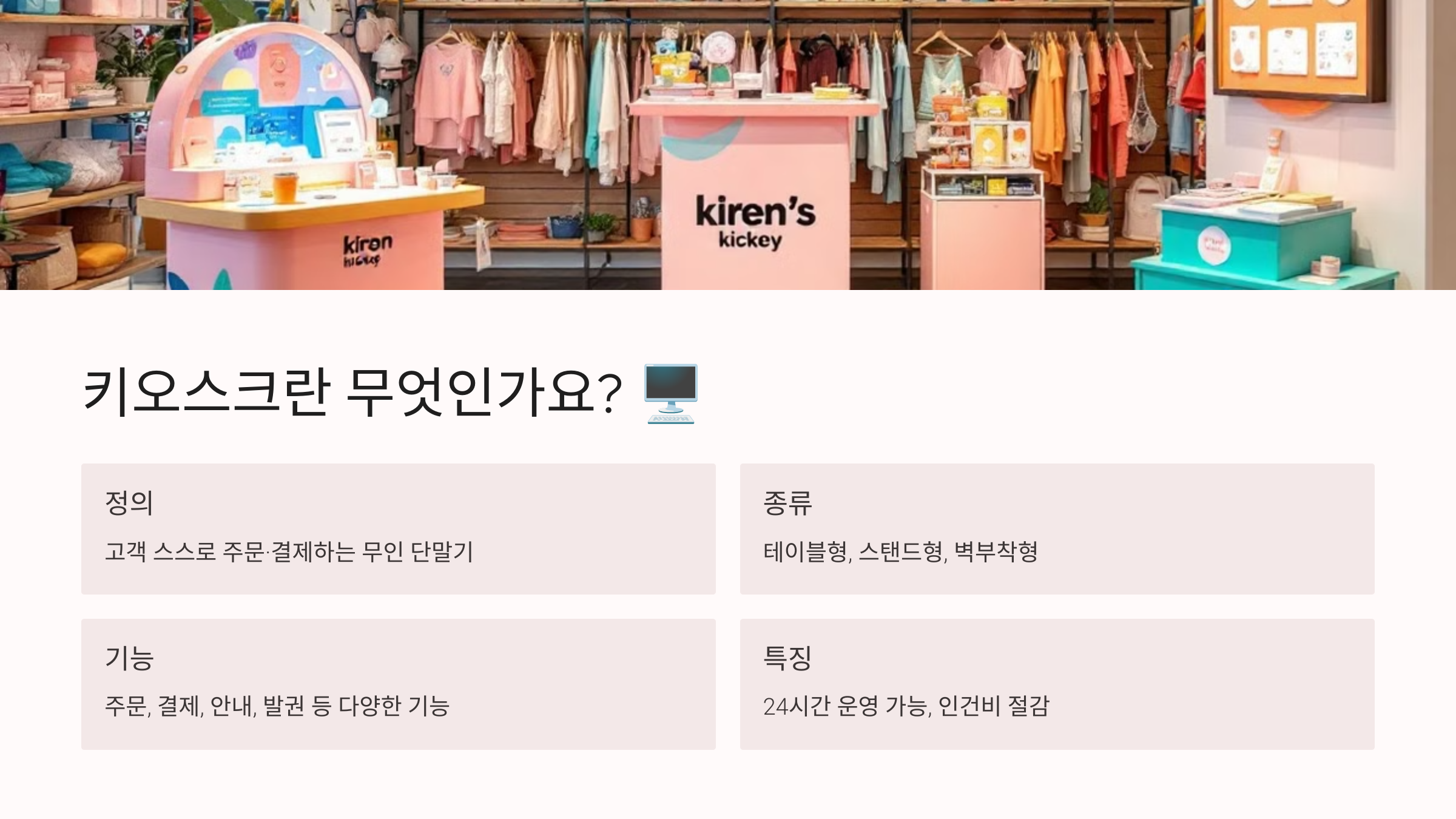 그럼 이제 ‘키오스크가 정확히 무엇인지’부터 자세히 알려드릴게요! 🖥️
