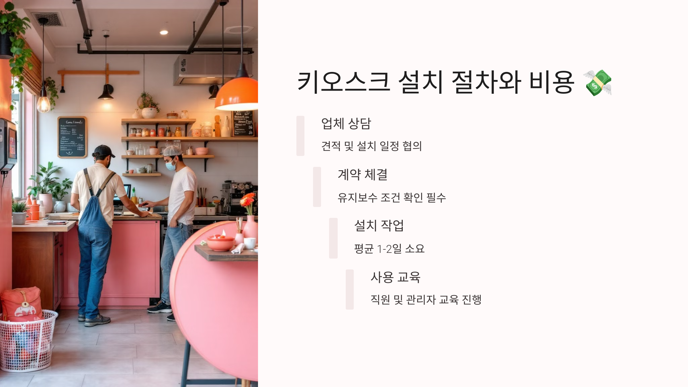 다음으로 ‘키오스크 설치 절차와 비용’을 자세히 알려드릴게요! 💸