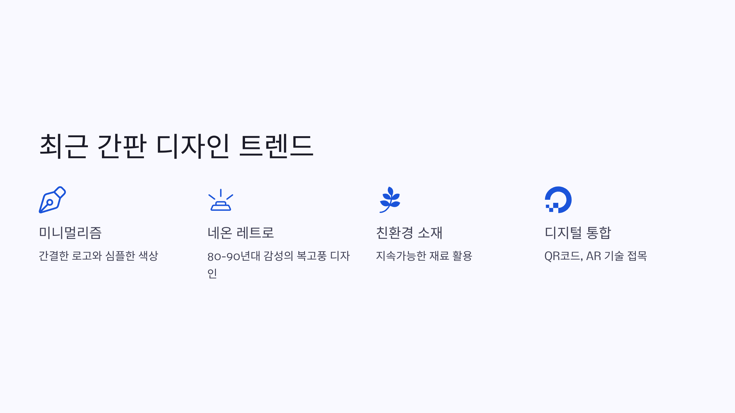 다음으로 ‘최근 간판 디자인 트렌드’를 알려드릴게요! 🚀