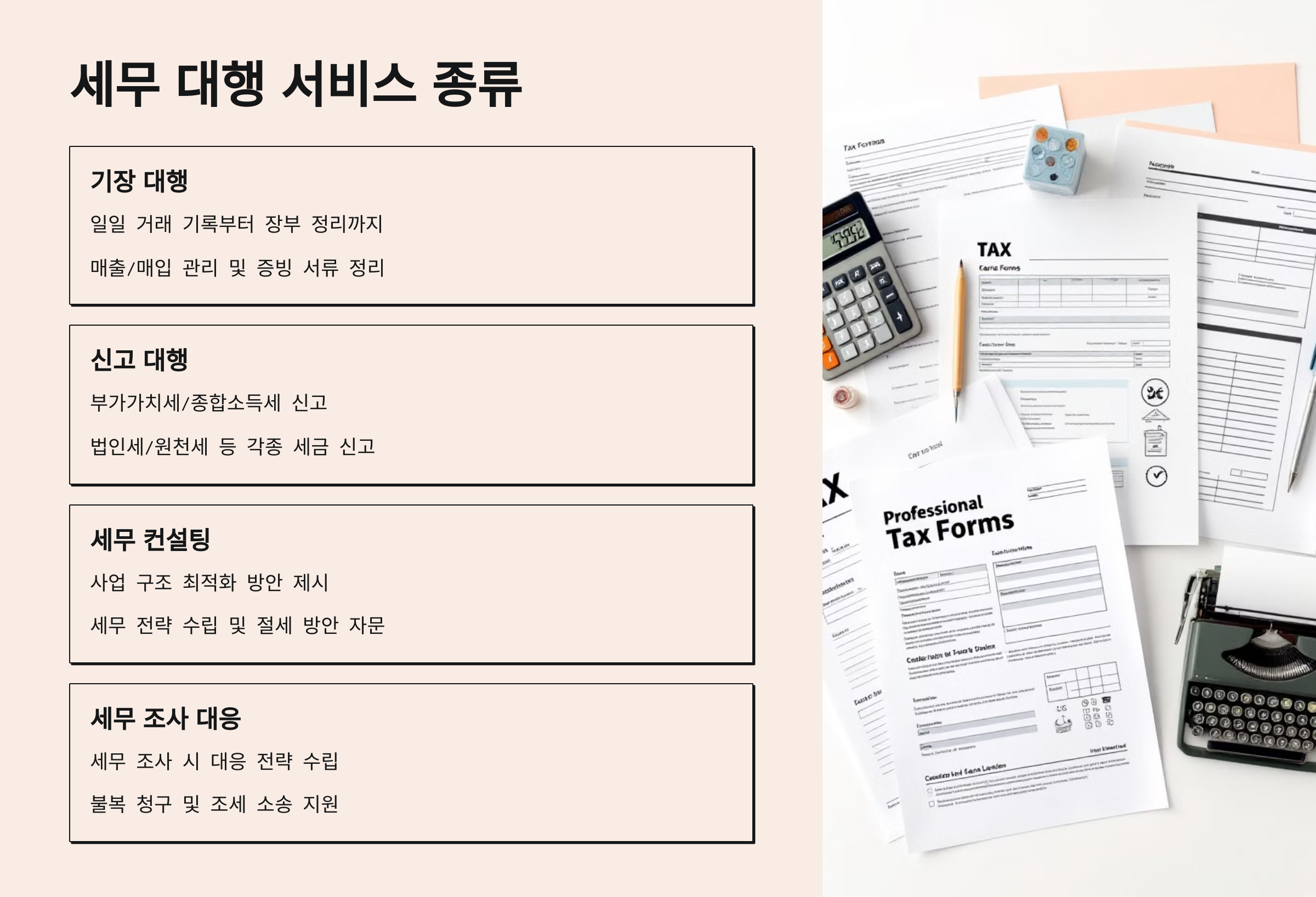 이제 ‘세무 대행 서비스 종류’를 자세히 알려드릴게요! 🚀