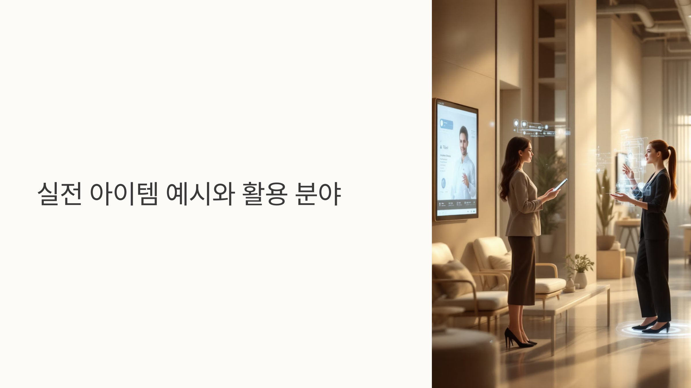 다음 섹션에서는 이 기술들을 실제로 어떻게 활용하는지, 어떤 아이템이 가능한지를 분야별 예시와 함께 정리해볼게요. ✨