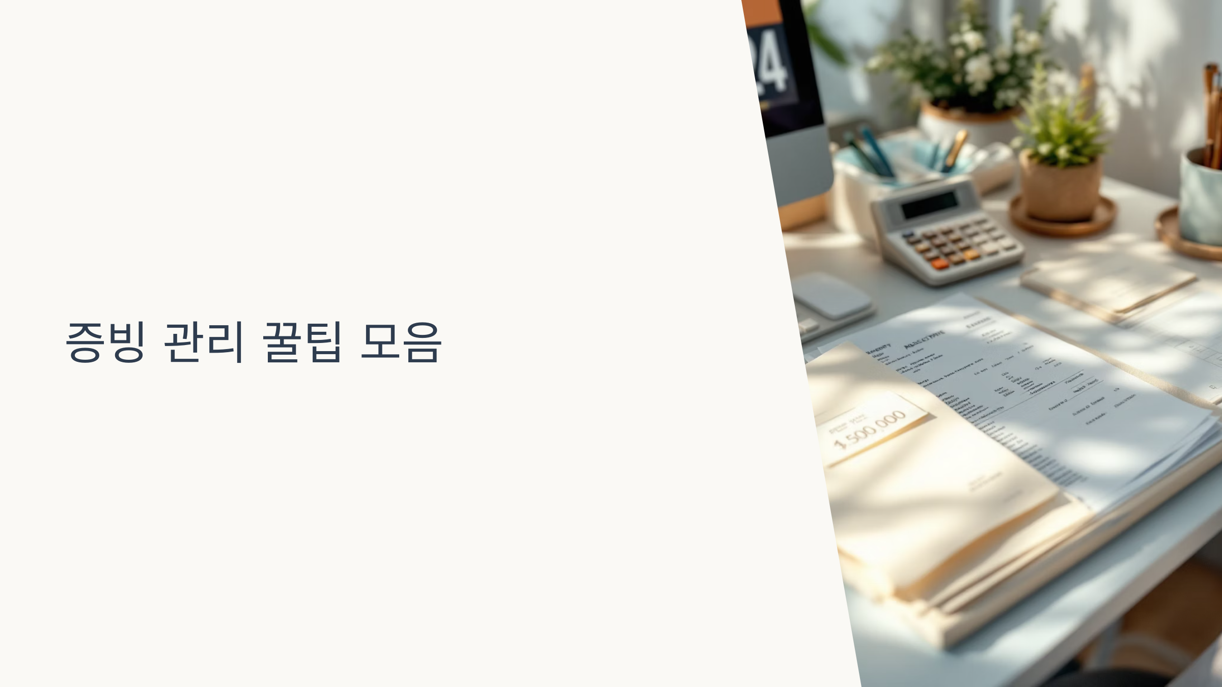 세금에서 절세보다 더 중요한 게 바로 ‘증빙 관리’예요. 아무리 많은 비용을 사용해도 그걸 제대로 증빙하지 못하면 세무서에서는 인정해주지 않아요. 결국, 절세는 ‘영수증 모으기’에서 시작된다고도 볼 수 있어요.