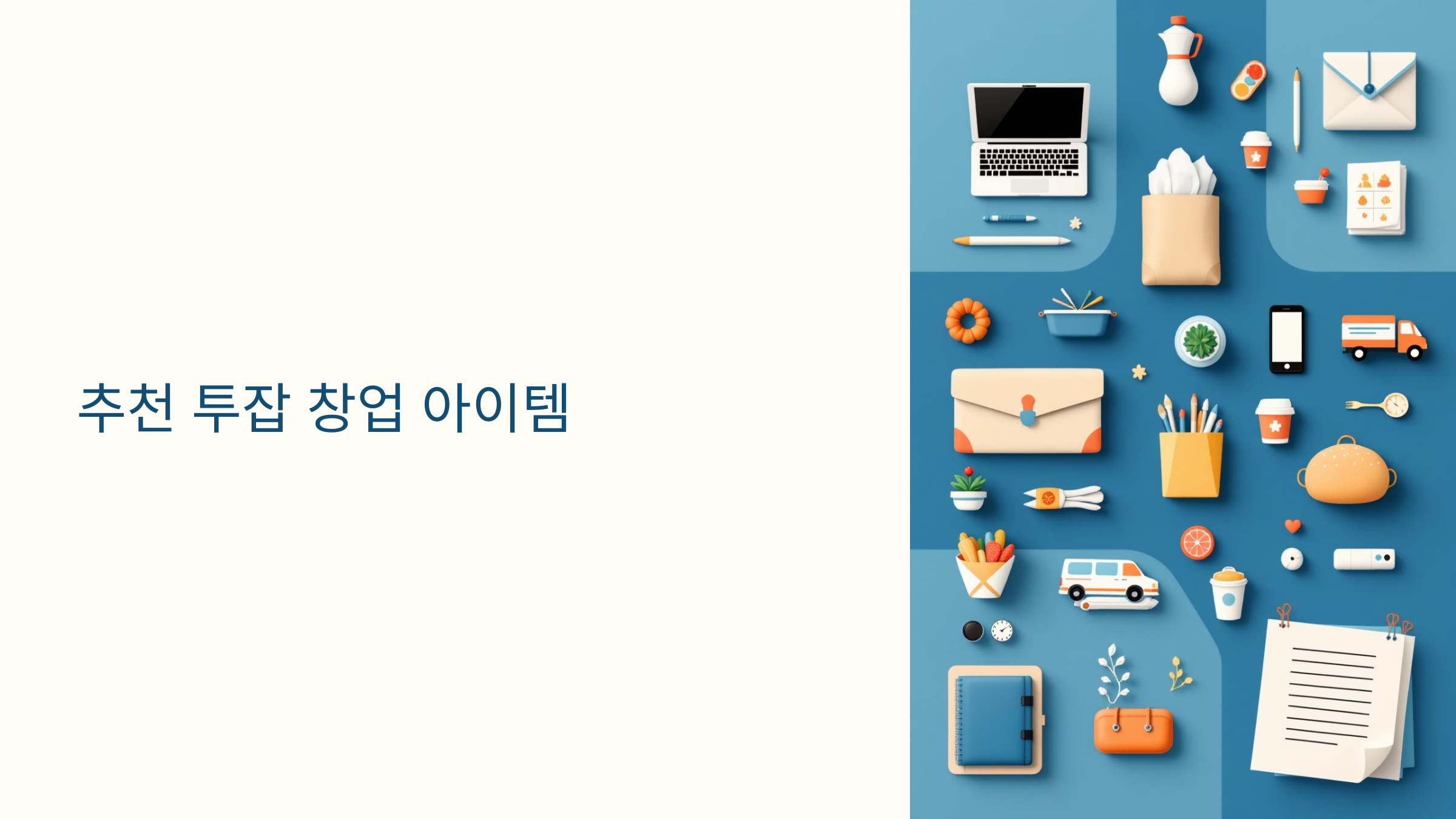 이 외에도 퇴근 후 배달대행이나, 주말 마켓 운영, 쿠팡 파트너스, 전자책 제작 등도 인기 있는 창업 아이템이에요. 중요한 건 내 시간과 체력, 자본 상황에 따라 잘 맞는 아이템을 고르는 거예요!