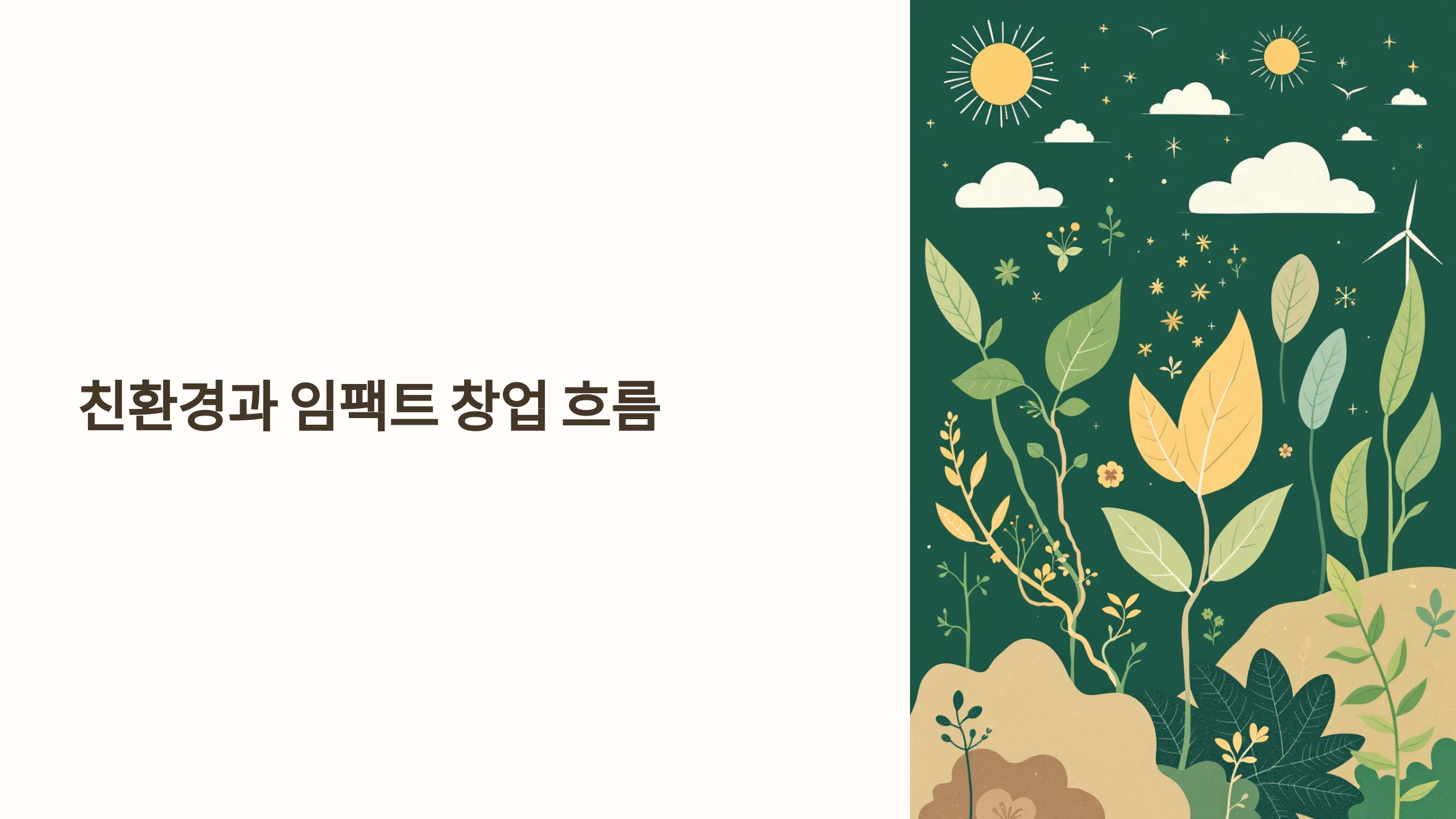 다음 섹션에서는 🌿친환경과 임팩트 창업 흐름🌿에 대해 이야기해볼게요. 사회적 가치를 중심으로 한 창업 트렌드도 엄청 뜨고 있거든요! 😍