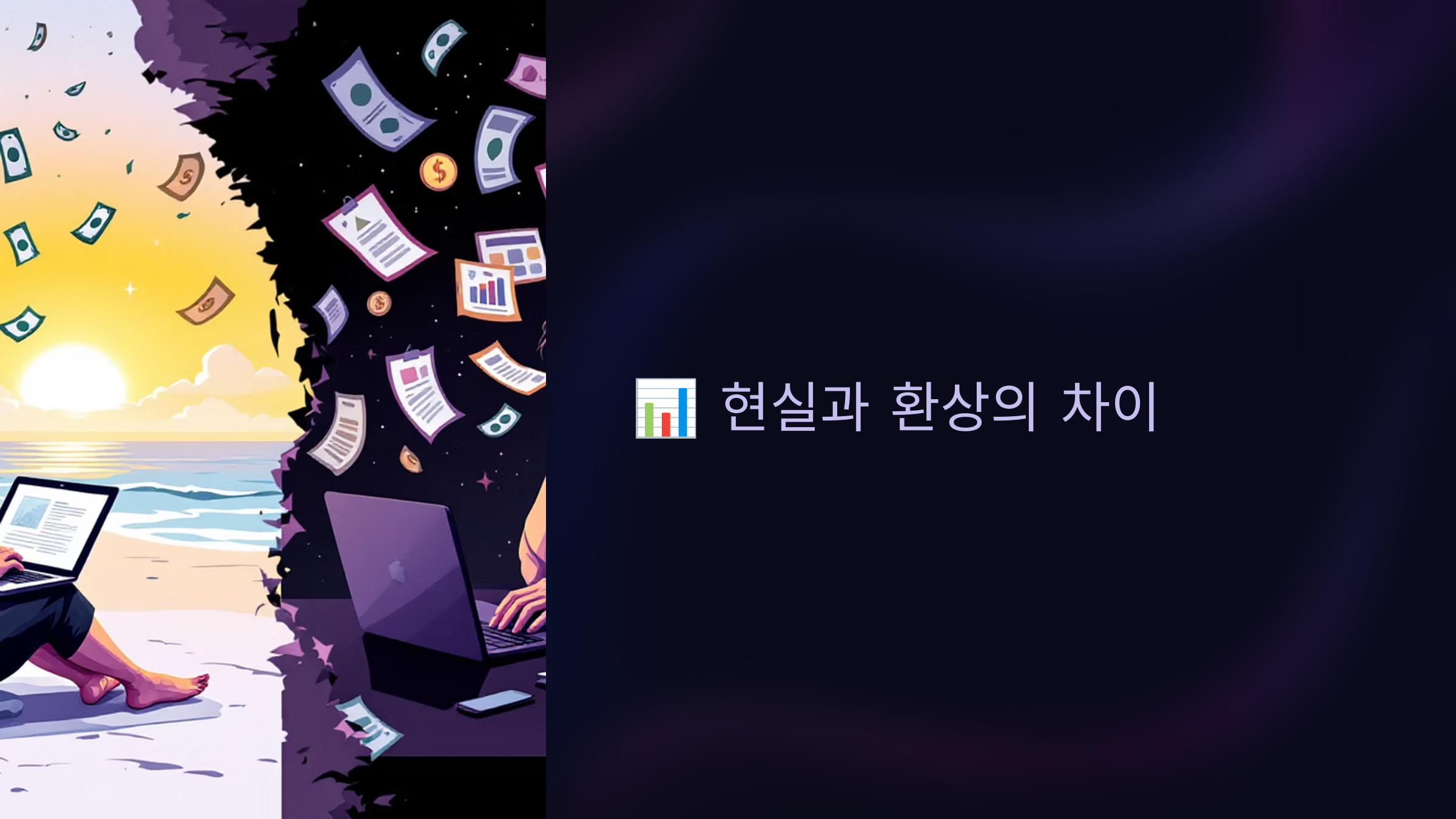 이제, 사람들이 가장 많이 속는 부분! “온라인 창업은 쉬운 길”이라는 환상과 실제 현실의 간극을 알아보는 시간이에요. 👀