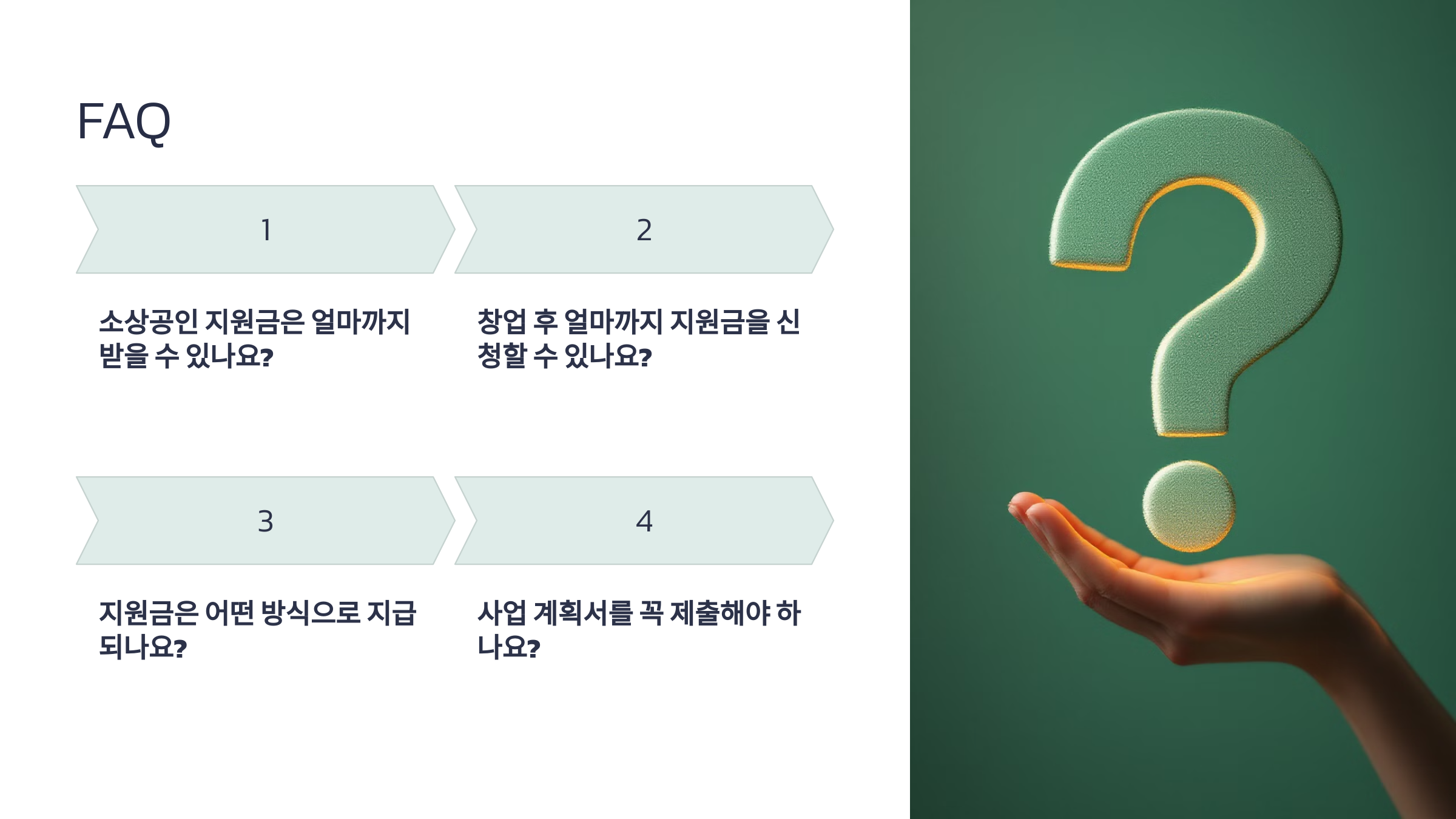 A5. 아니에요. 소상공인 창업 지원금은 연령에 관계없이 누구나 신청 가능하지만, 청년 창업자에게 추가 혜택이 제공될 때가 있어요.