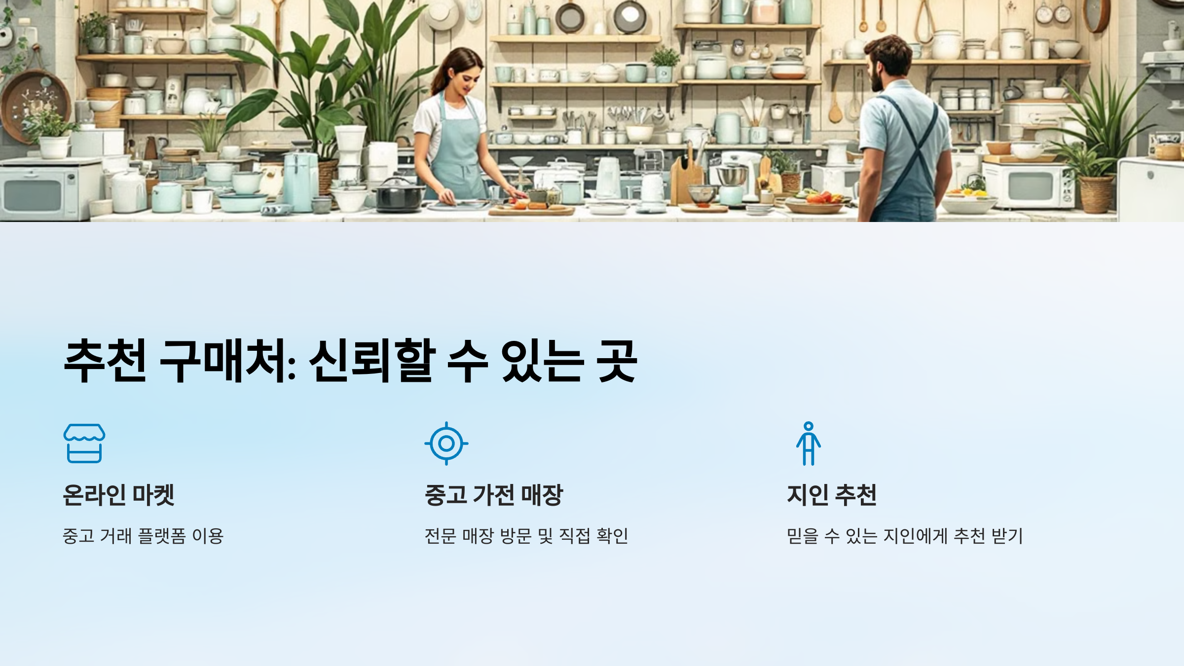 오프라인 매장도 좋은 선택지가 될 수 있어요. 중고 가전 전문 매장이나 주방 기기 전문 중고 매장은 품질 검증된 제품을 제공하는 경우가 많아 믿을 수 있어요. 특히 AS나 보증을 제공하는 매장은 안심하고 구매할 수 있답니다.
