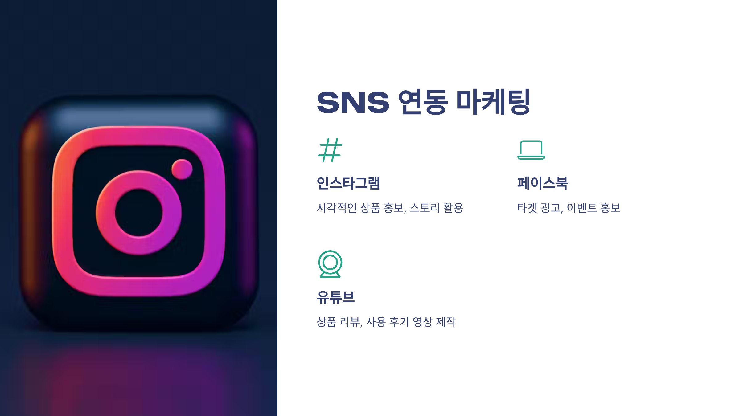 SNS는 스마트스토어 마케팅에서 중요한 역할을 해요. 인스타그램, 페이스북, 틱톡과 같은 플랫폼을 활용하면 더 많은 고객에게 제품을 알릴 수 있어요. SNS는 제품 홍보뿐만 아니라 고객과의 소통 창구로도 활용할 수 있어요.