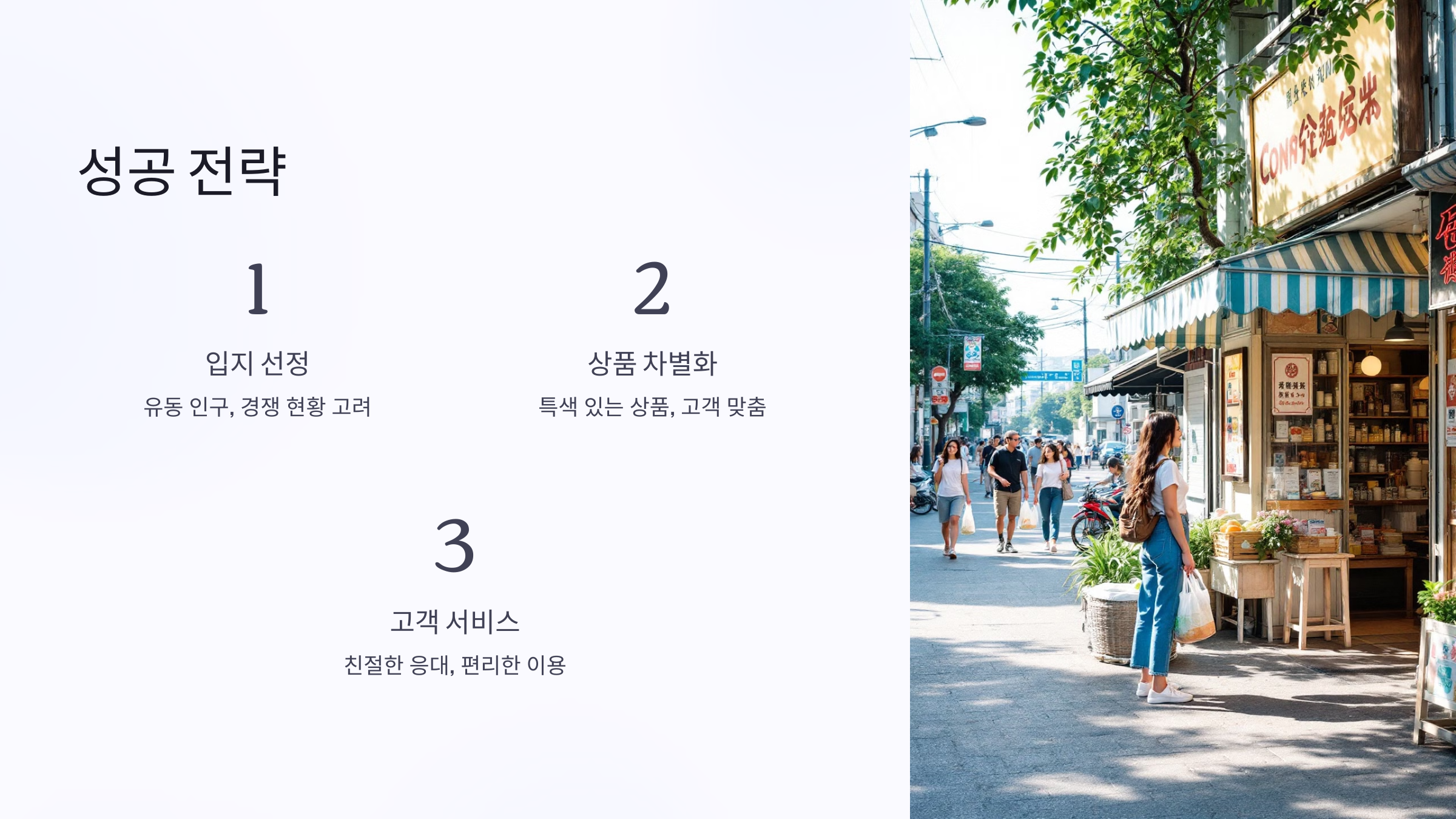 1. 입지 선정이 핵심이에요.