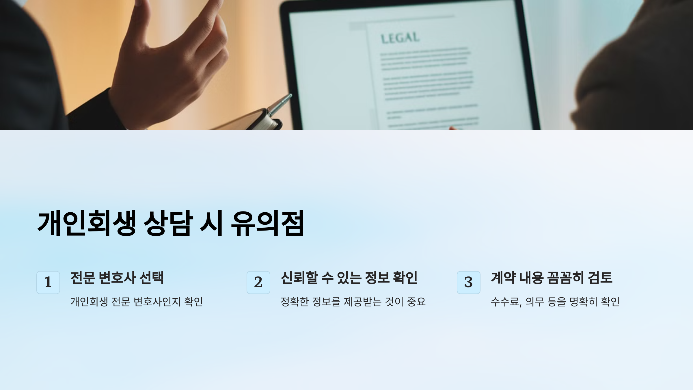 개인회생 상담은 성공적인 신청을 위해 중요한 단계예요. 상담 시 아래의 유의점을 참고해 보세요.