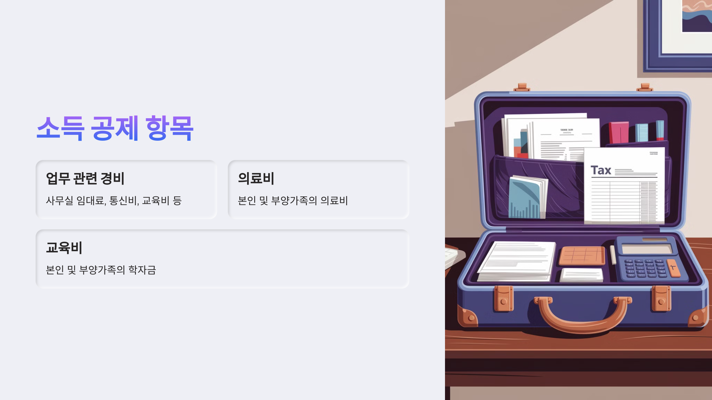 프리랜서가 세금 신고 시 소득 공제를 적절히 활용하면 세금 부담을 줄일 수 있어요. 다음은 주요 소득 공제 항목들을 정리했어요.