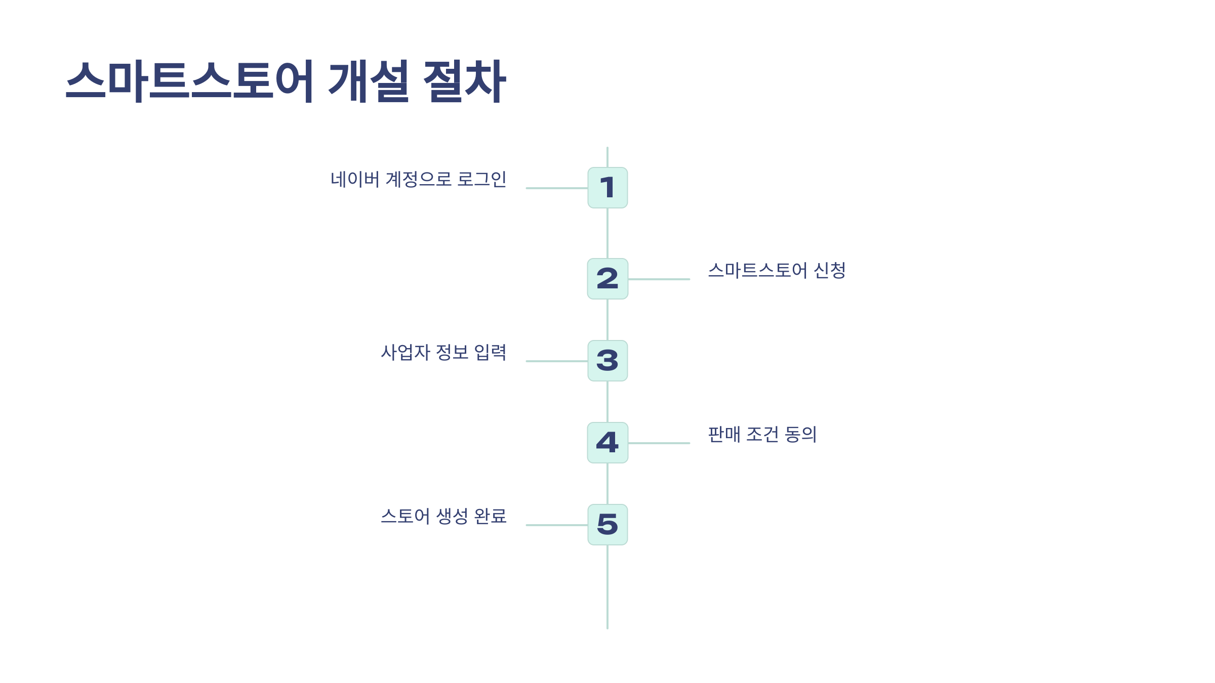 스마트스토어 개설은 네이버 계정만 있으면 누구나 무료로 진행할 수 있어요. 아래는 개설 절차에요:
