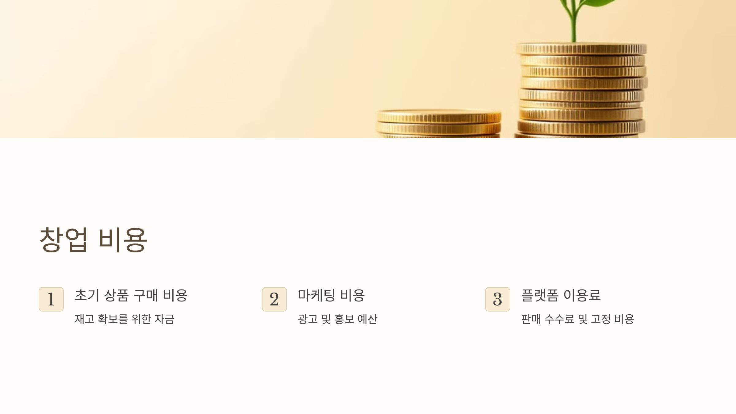 소자본으로 시작할 수 있으며, 창고 없이도 운영 가능하여 초기 부담이 적습니다.
