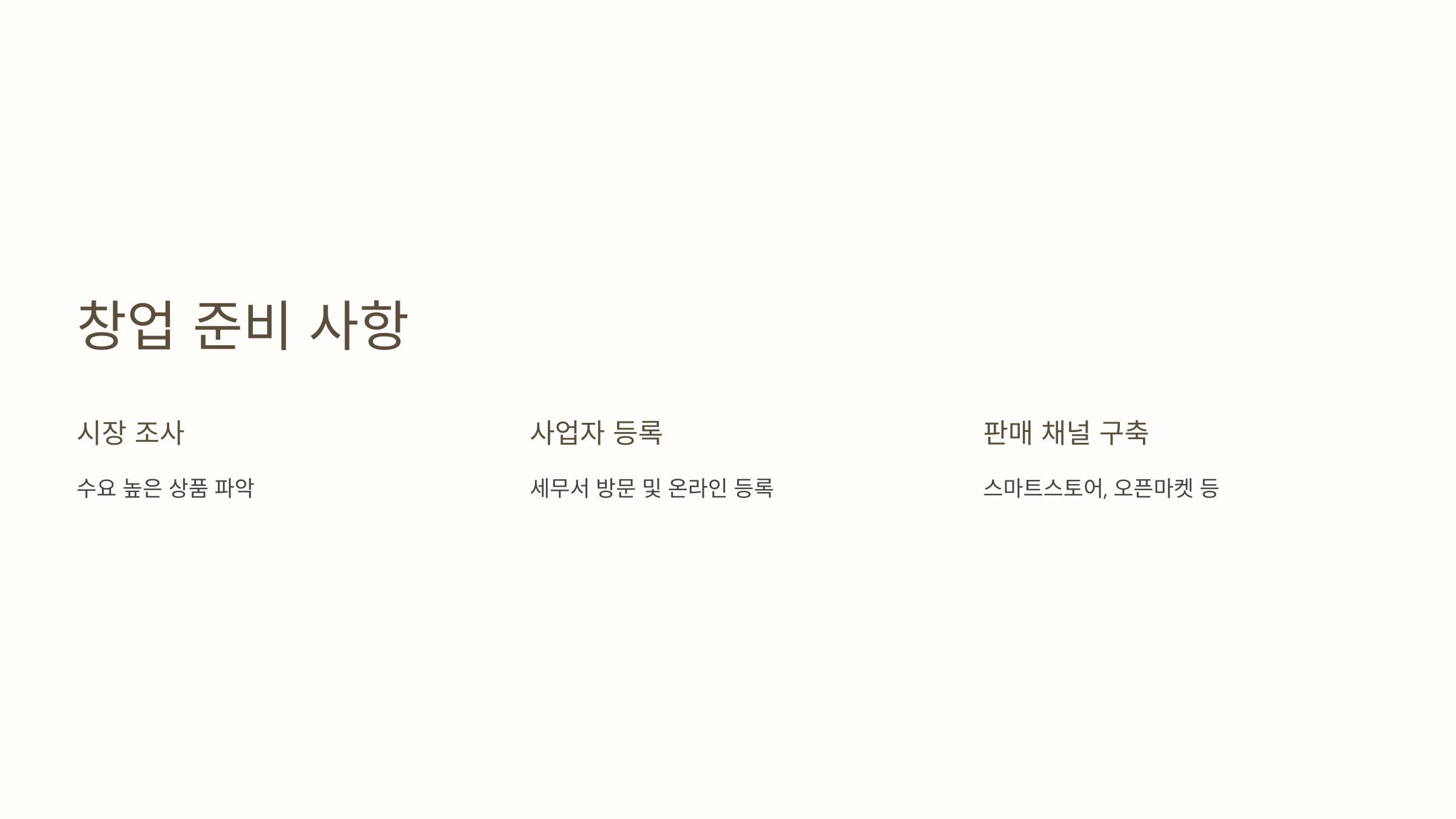 - 자사몰 구축: 카페24, 고도몰 등을 통해 독립형 쇼핑몰 운영 (자체 브랜드 구축 가능)