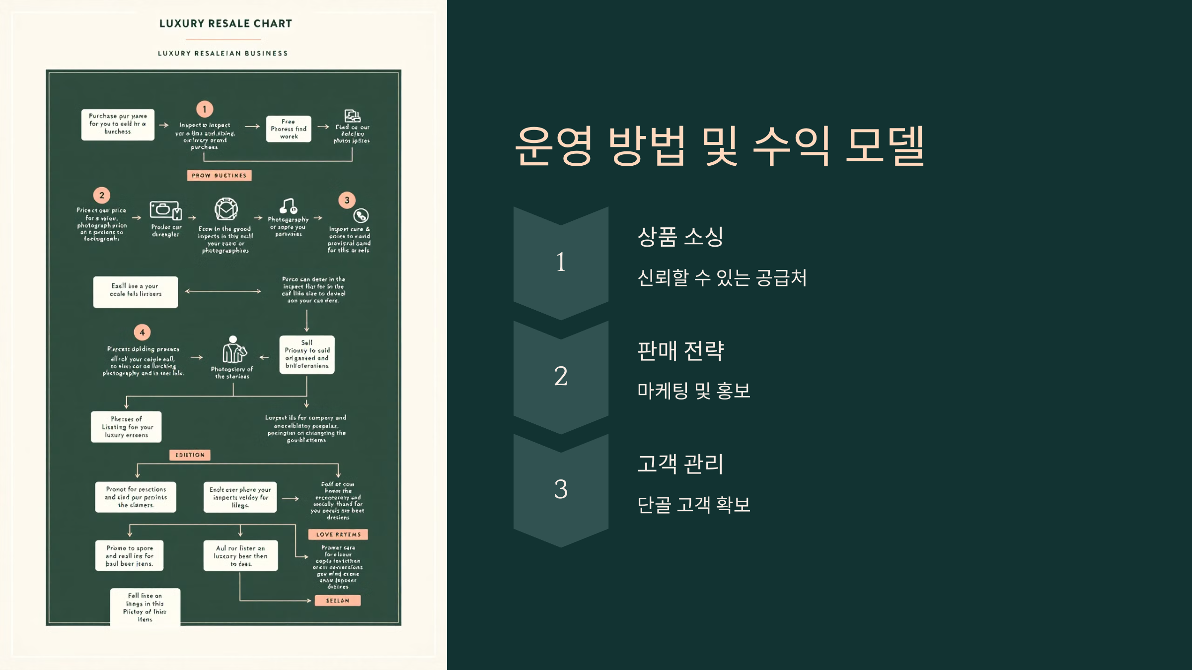 - 오프라인 매장 운영: 매장을 직접 운영하거나 명품 편집샵과 협업하여 위탁 판매