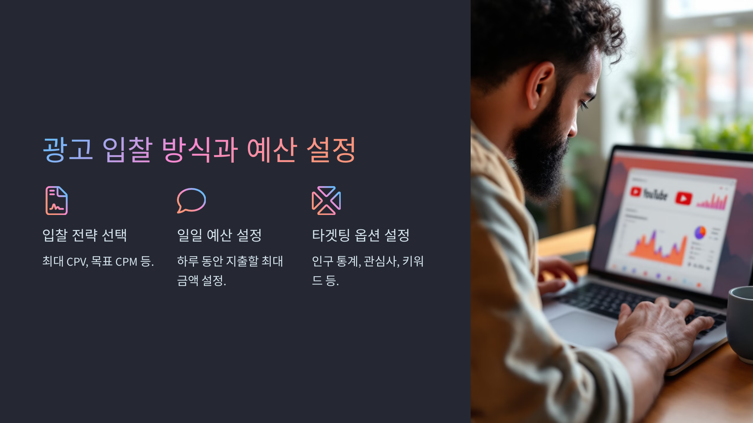 유튜브 광고는 효과적이지만, 무작정 예산을 투입한다고 좋은 결과를 얻을 수 있는 것은 아니에요. 적은 비용으로 더 큰 효과를 보기 위해 몇 가지 최적화 전략을 활용할 수 있어요.