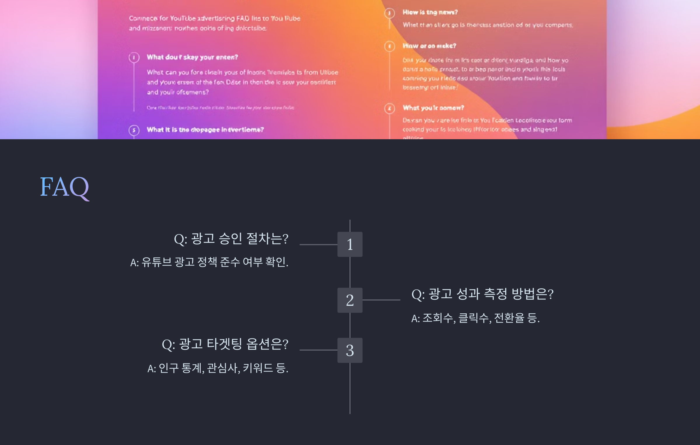 이제 유튜브 광고에 대한 궁금증을 해결할 수 있는 FAQ를 확인해볼게요. ❓