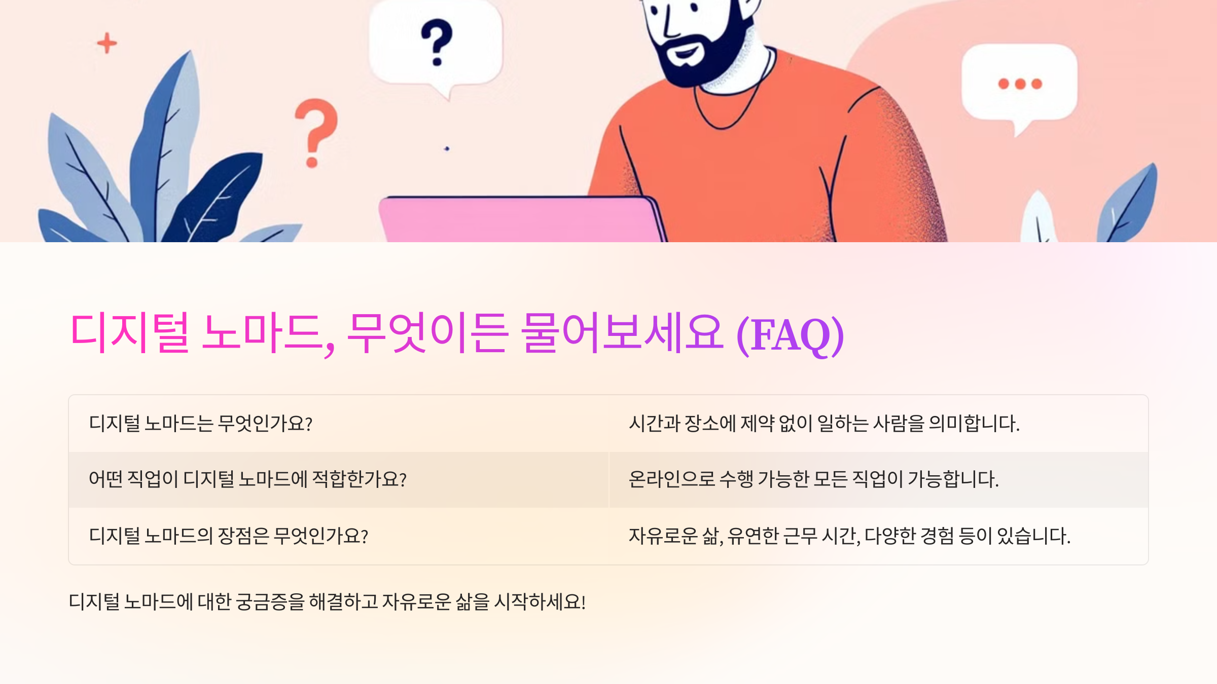 📌 노마드 워크 창업 관련 자주 묻는 질문을 확인해 보세요!