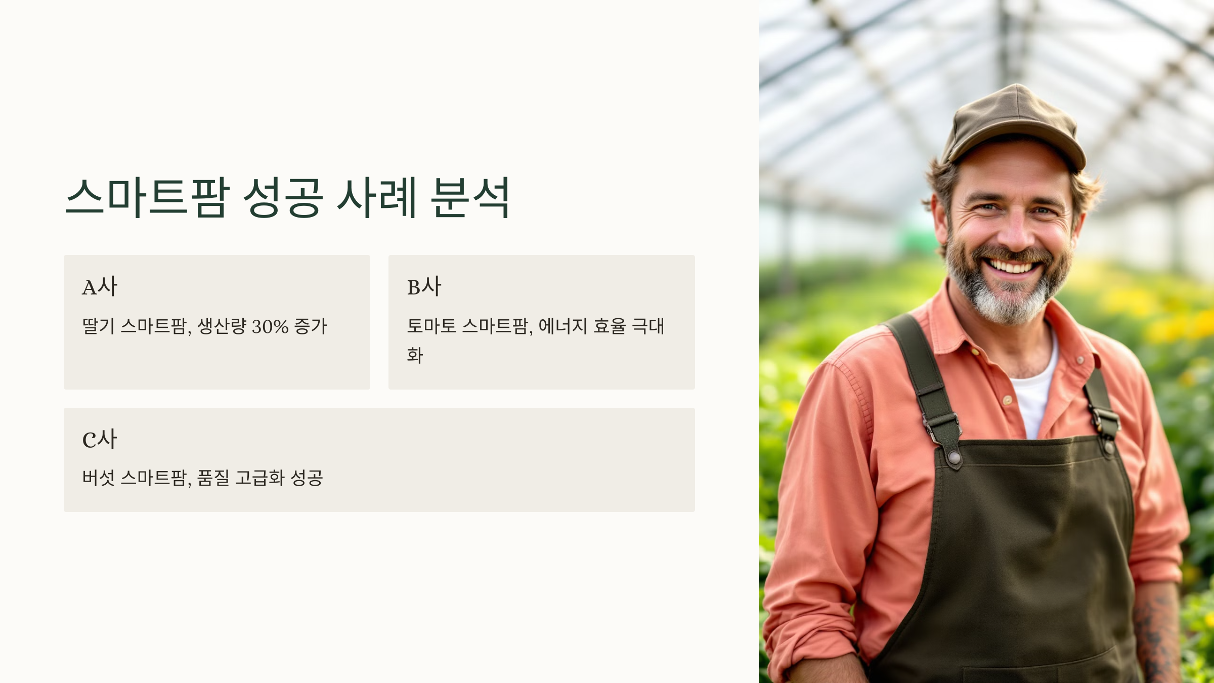 | 이름 | 스마트팜 유형 | 월 매출 | 성공 요인 |