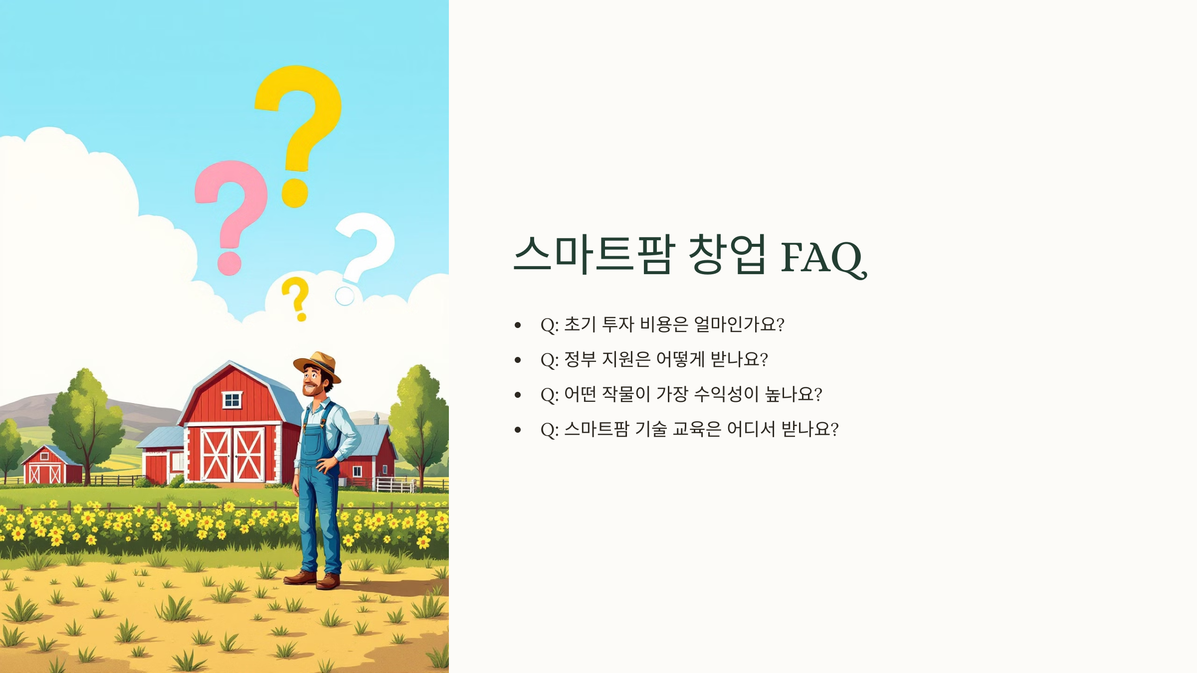 이제 스마트팜 창업과 관련된 궁금증을 해결해볼까요? 다음 섹션에서는 **FAQ(자주 묻는 질문)** 을 정리해드릴게요! 🔍