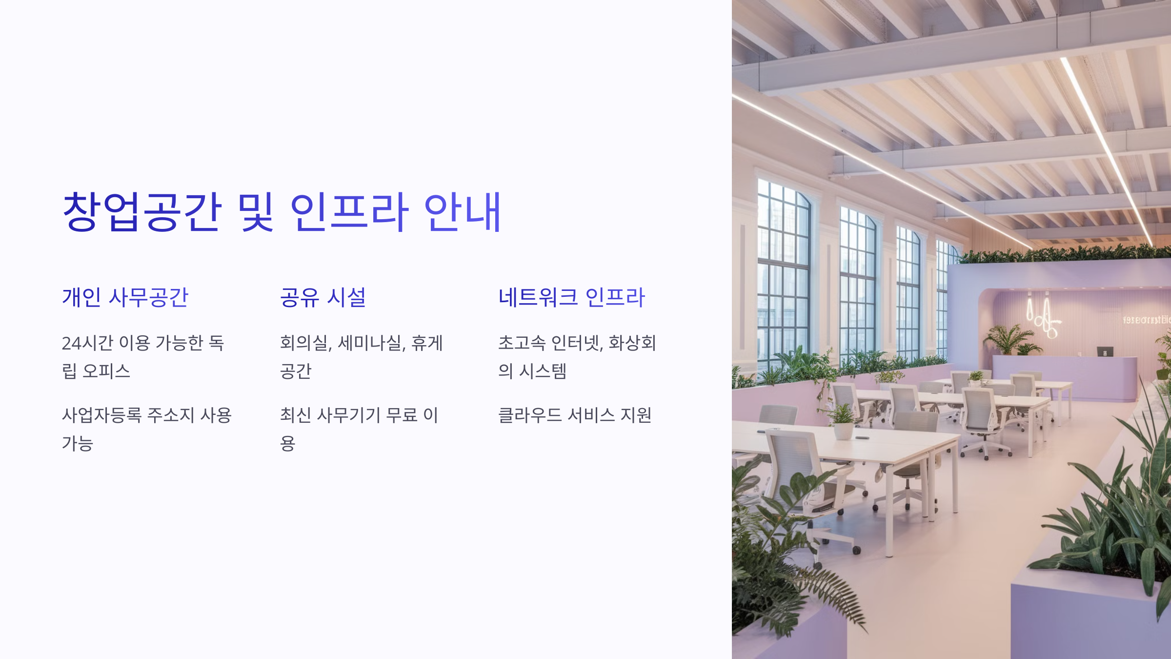 다음으로 ‘창업공간 및 인프라’도 소개할게요! 🏠