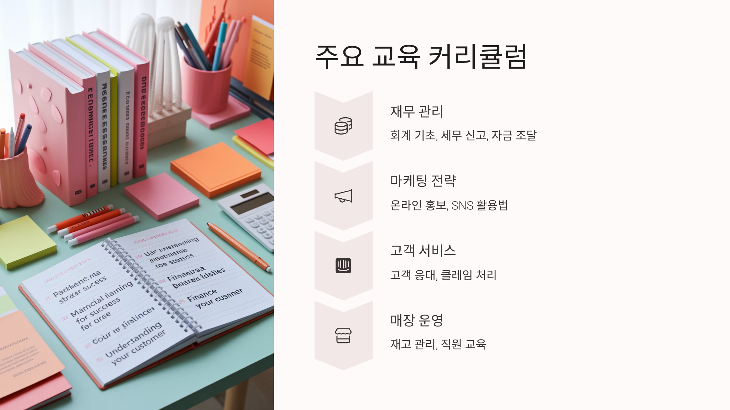창업은 단순히 ‘가게를 여는 것’이 아니에요. 시장 분석, 사업계획 수립, 자금 조달, 세무·노무 관리, 고객 확보 등 복합적인 요소가 필요하죠. 창업 교육을 통해 이러한 항목들을 사전에 배우고 실전에 대비하는 것이 필수예요.