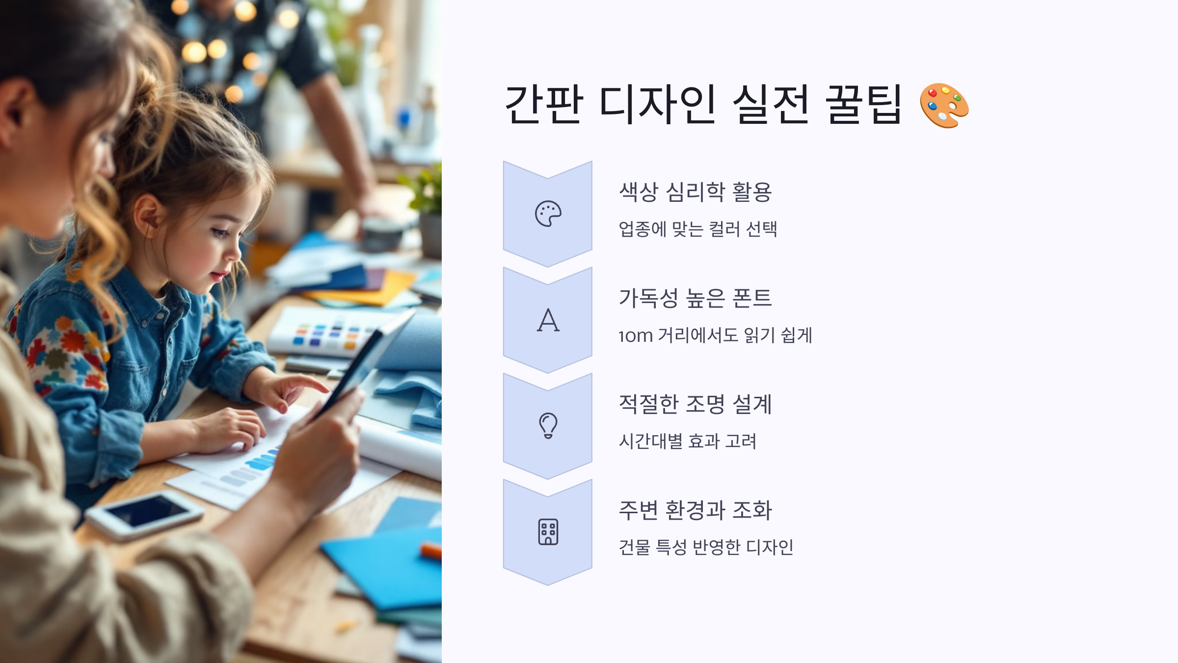 이제 ‘간판 디자인 실전 꿀팁’까지 마무리로 알려드릴게요! 🚀