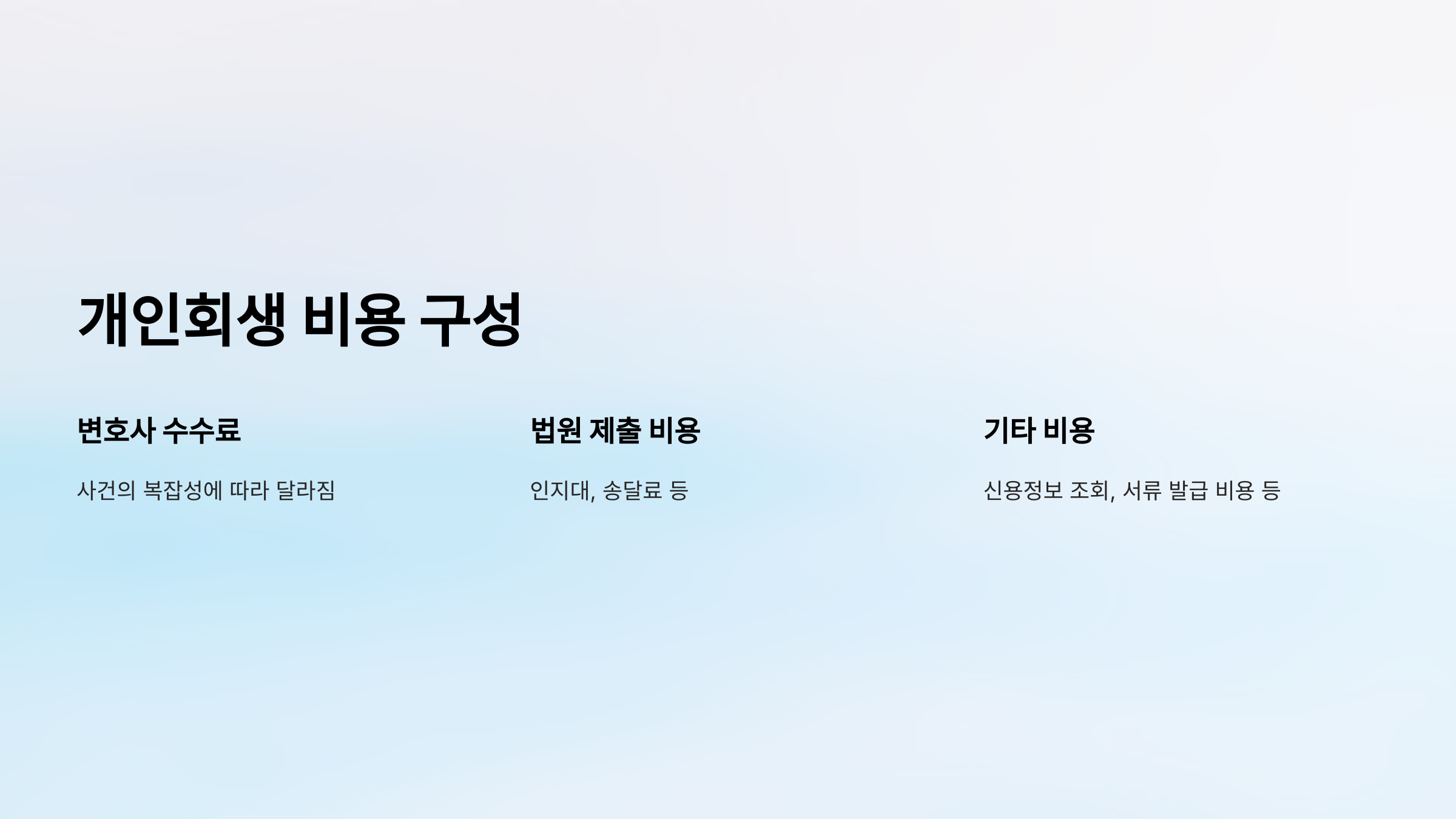 개인회생을 진행하기 위해서는 몇 가지 필수 비용이 발생해요. 비용은 상황에 따라 다를 수 있지만, 주요 항목은 다음과 같아요.