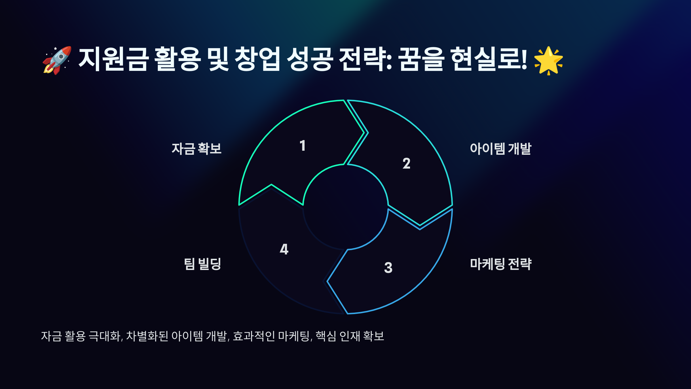- ✅ 스타트업 투자 프로그램 도전: 기술 기반 창업이라면 민간 액셀러레이터 투자를 받아보세요.