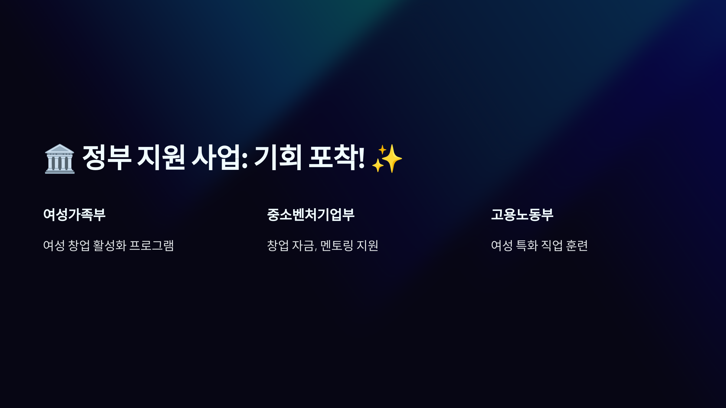 태그: 여성 창업, 창업 지원금, 정부 지원금, 소자본 창업, 창업 대출, 스타트업 투자, 여성 기업, 창업 성공 전략