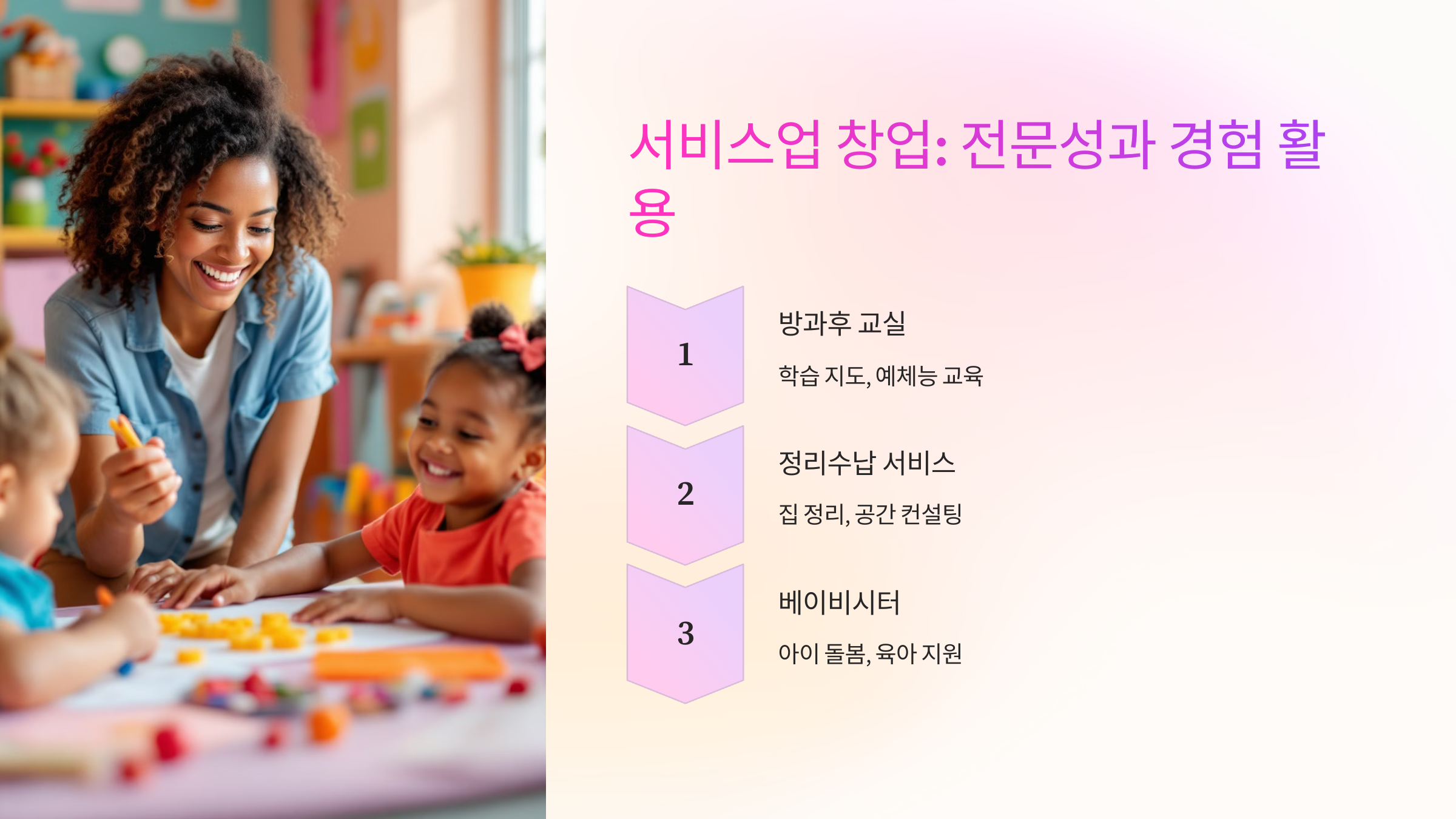 특히 주부들이 가진 경험과 능력을 살려 시작할 수 있는 서비스업 아이템을 소개할게요. 😊