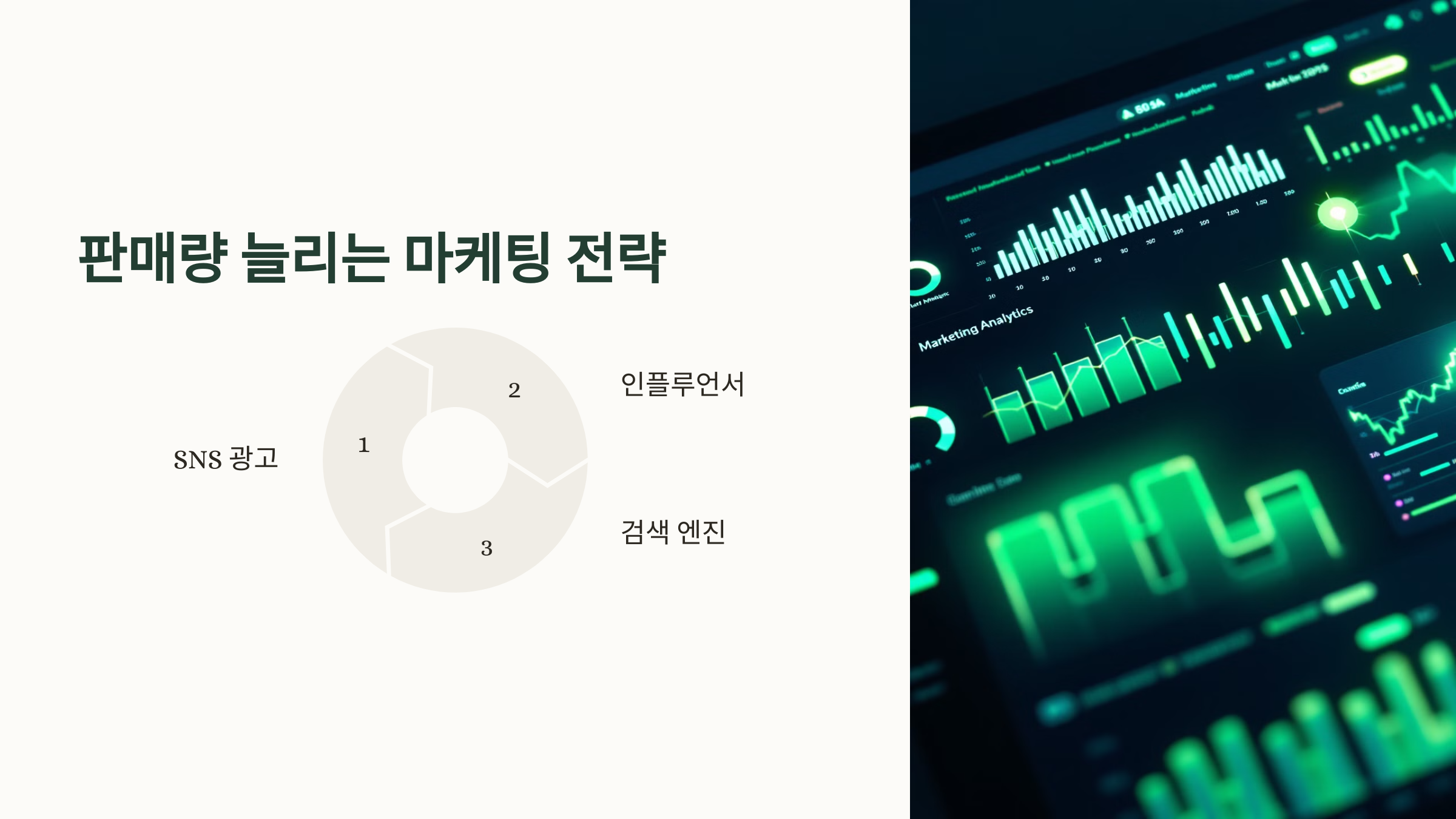 다음으로는 **판매량을 늘리는 마케팅 전략**을 알아볼 차례예요! 📢