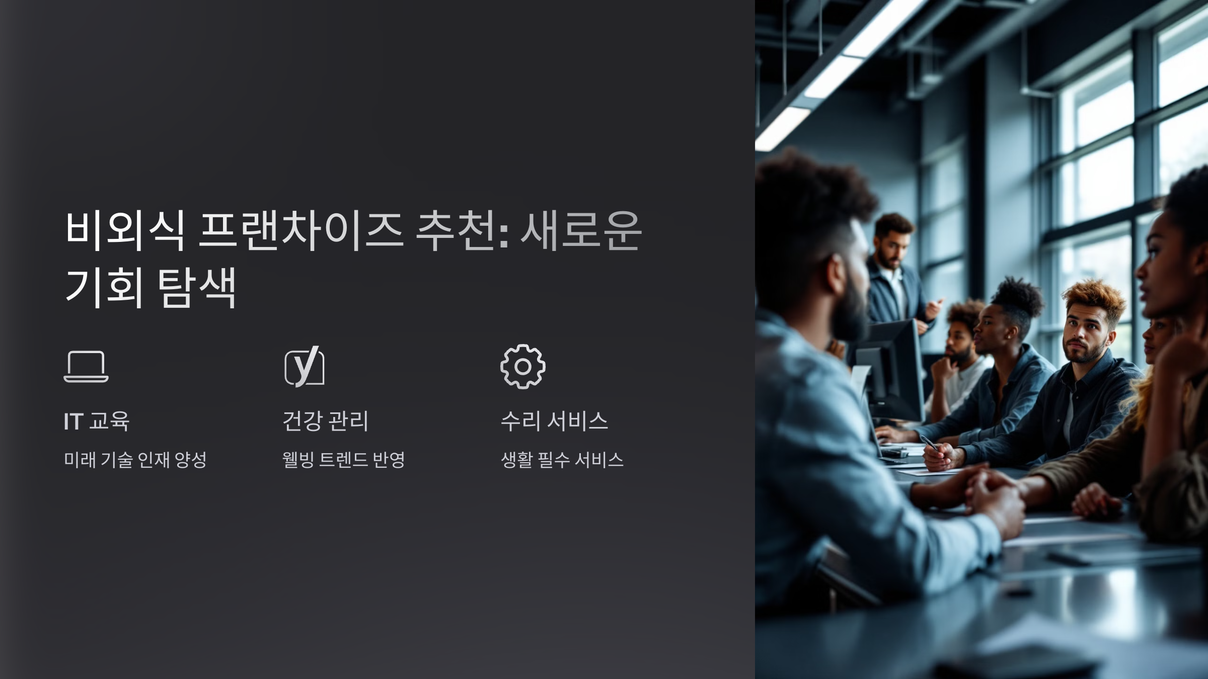 외식업 외에도 높은 수익을 기대할 수 있는 다양한 프랜차이즈가 있어요. 특히 무인 매장, 헬스케어, 교육 관련 업종이 2025년에 주목받고 있어요.