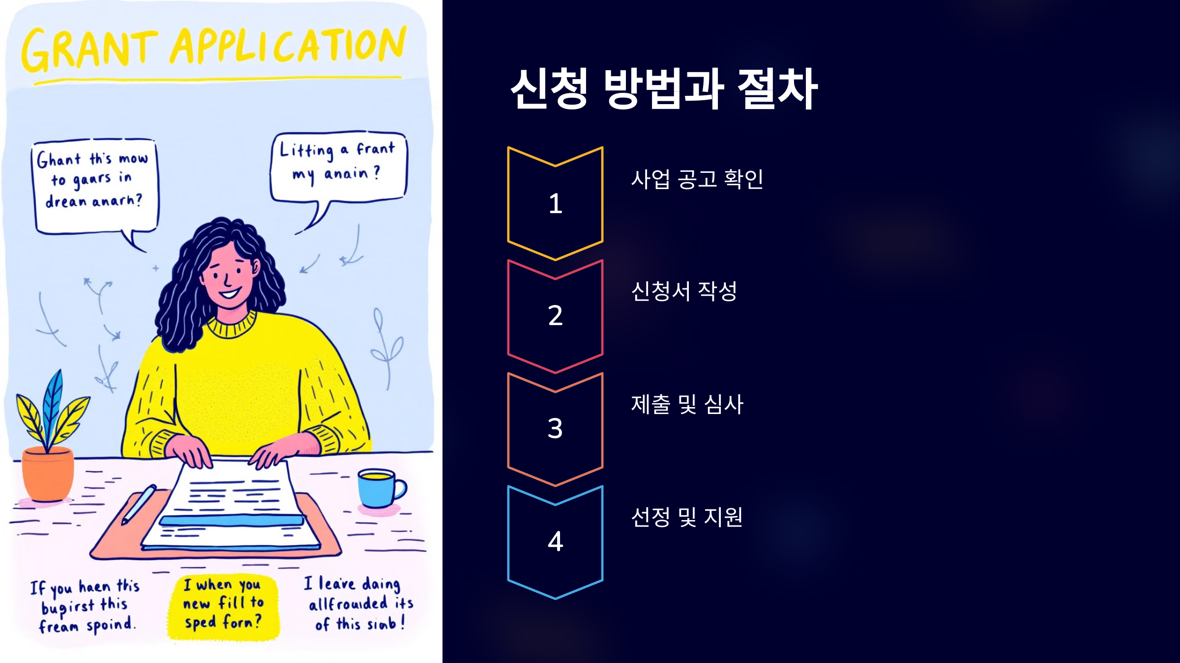- 최종 선정 및 지원금 지급: 심사 통과 후 지원금 지급 또는 프로그램 참여