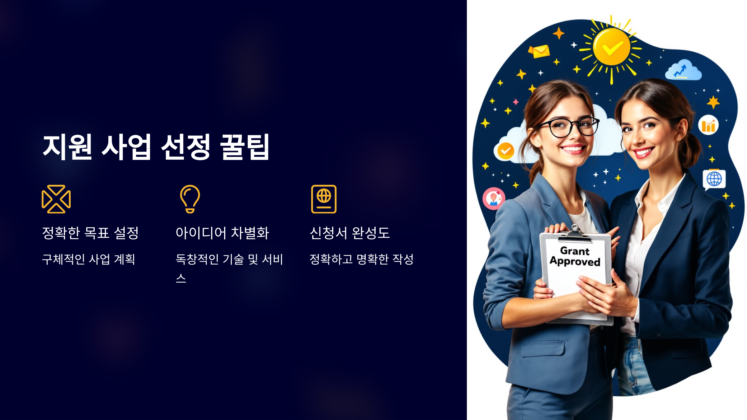 중소기업 지원 사업은 경쟁률이 높아 **전략적으로 접근해야 선정 확률을 높일 수 있어요.** 아래 꿀팁을 활용하면 지원금을 받을 가능성이 훨씬 커질 거예요! 🚀