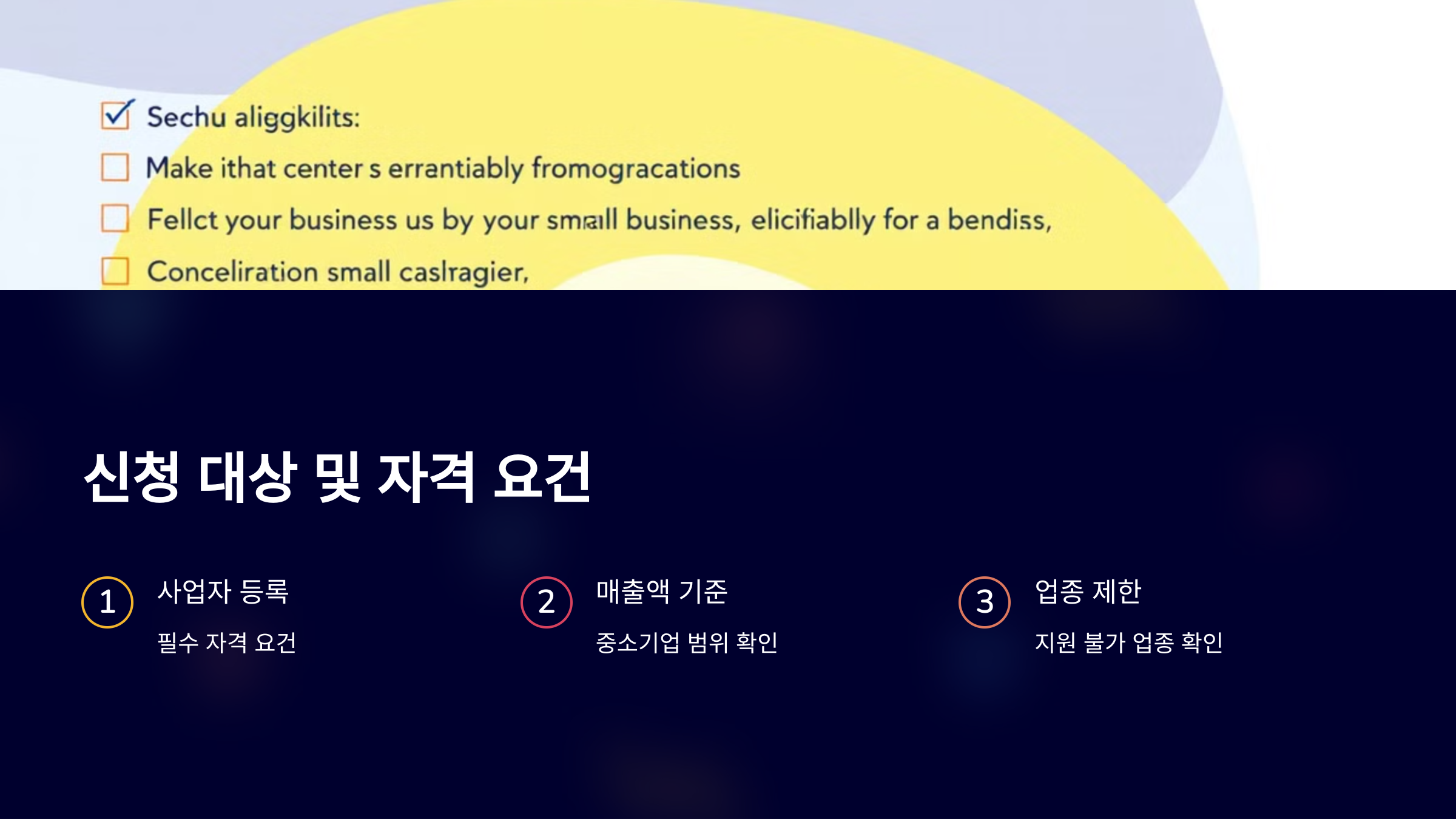 중소기업 지원 사업은 **기업의 규모, 업종, 창업 연차 등에 따라 신청 자격이 다르게 적용돼요.** 신청 전에 지원 요건을 정확히 확인하고 준비하는 것이 중요해요! ✅